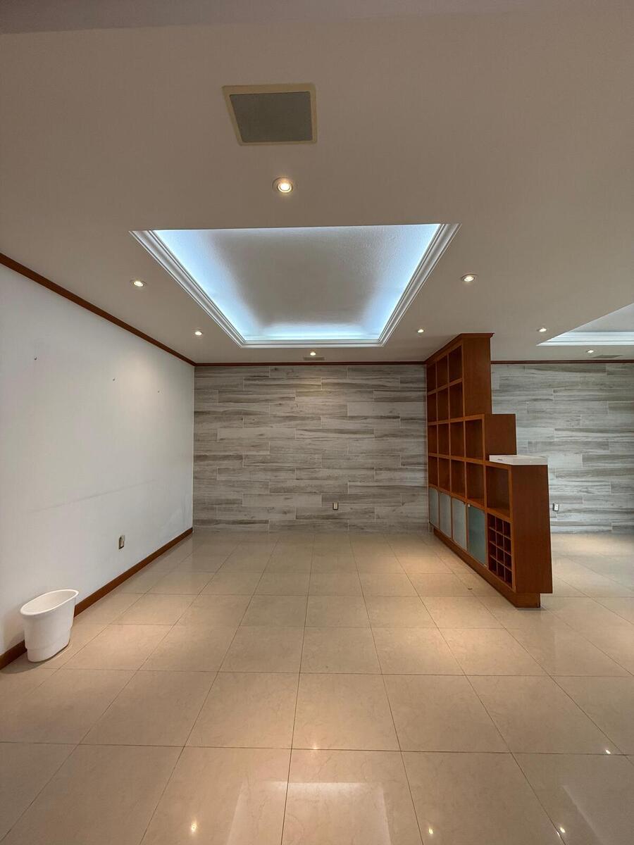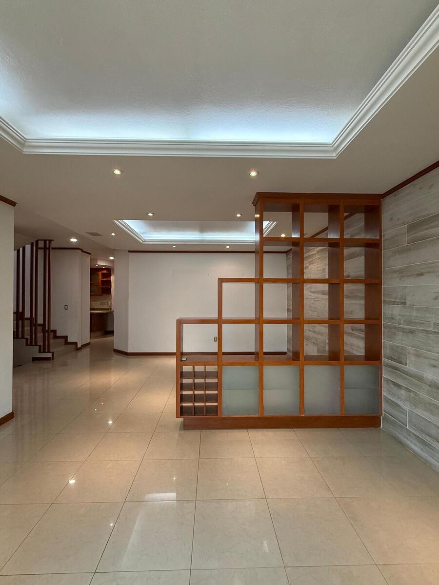 Entre los detalles de este nivel se encuentra plafón con tira led, iluminación indirecta, molduras de madera en techos y zoclos a juego.
