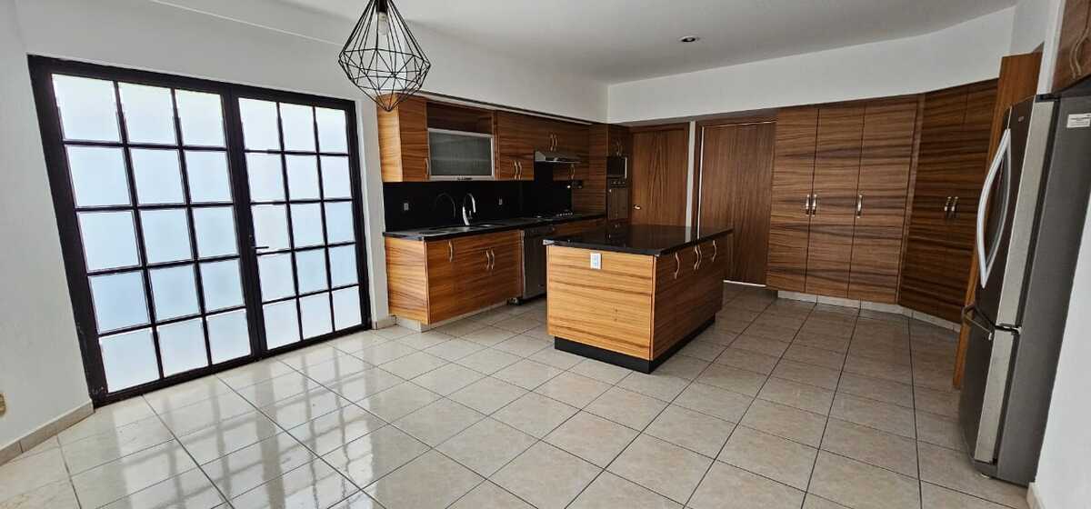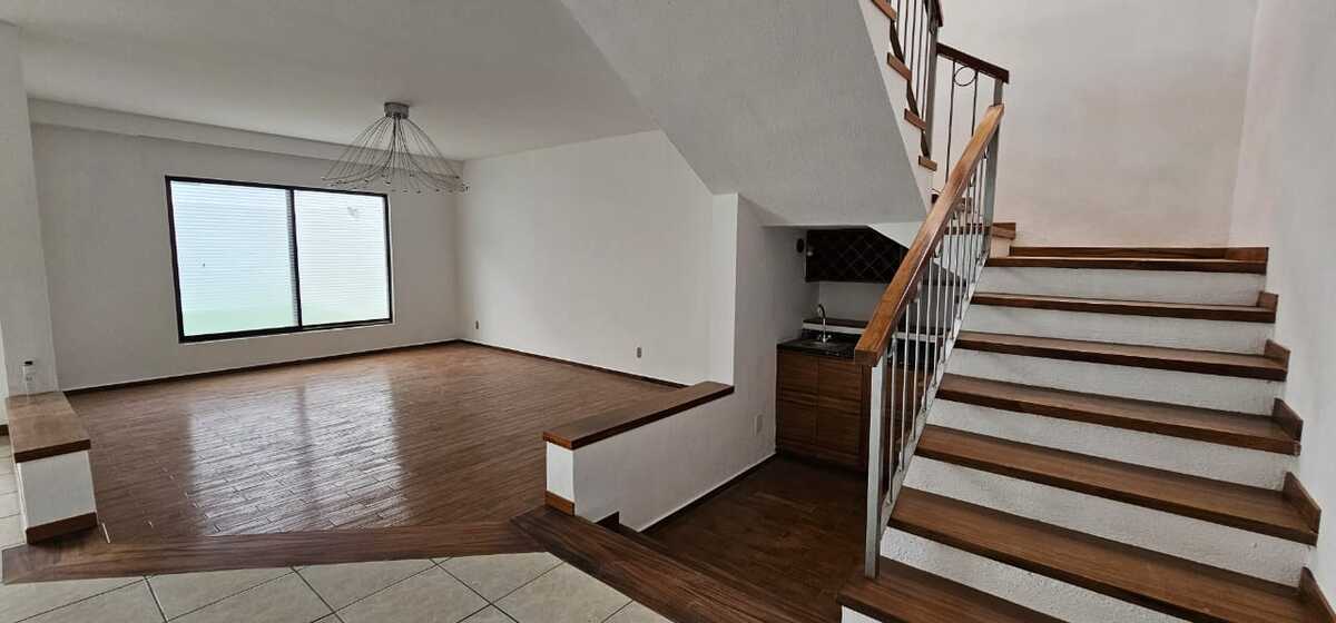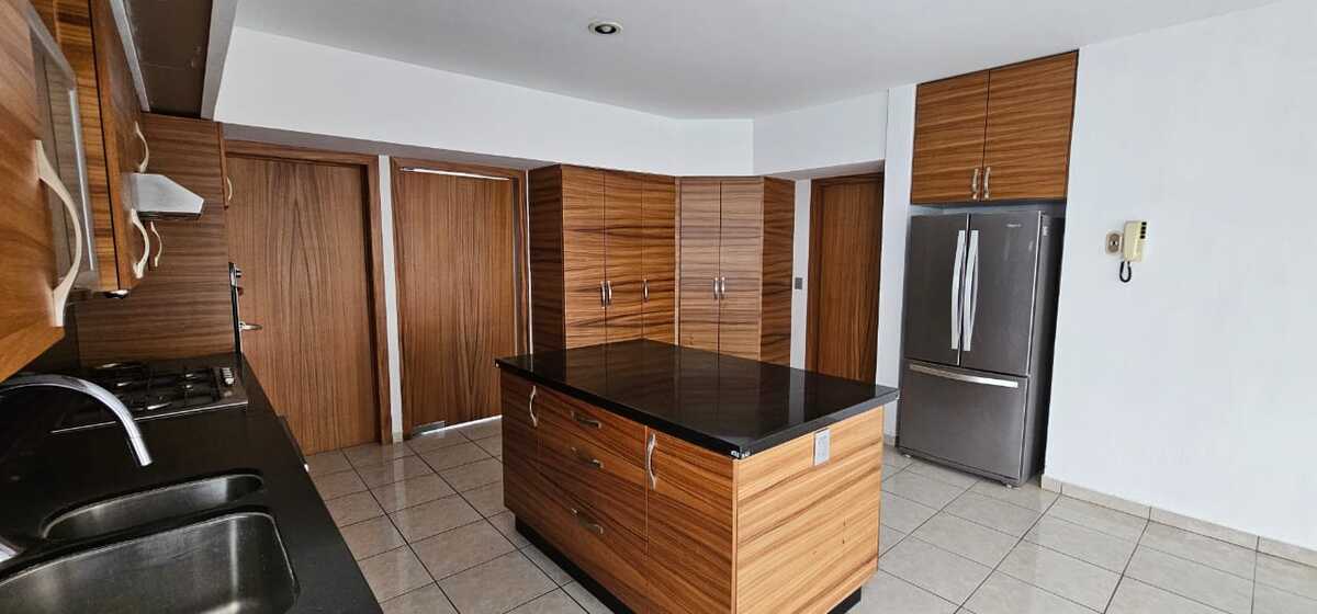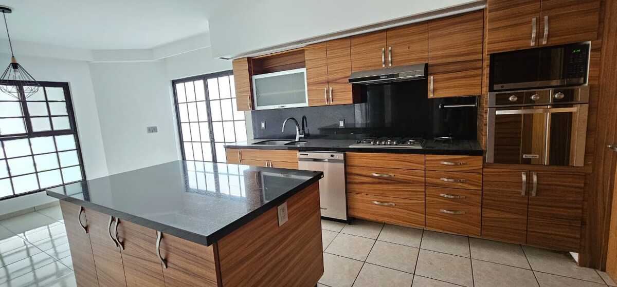 En Planta Baja cuenta con amplia área de sala, comedor, estudio o cuarta recamara, baño completo de visitas, cocina integral con isla y área para desayunador, terraza techada, jardín, cuarto de lavado, cuarto de servicio con baño completo y cochera techada para 2 autos mas espacio para otros dos más.