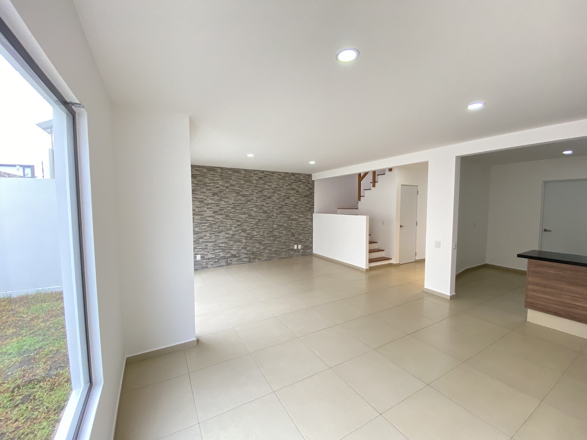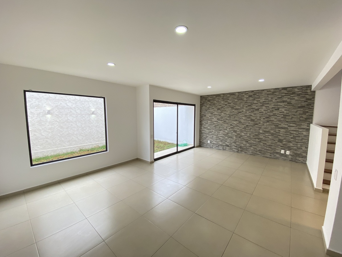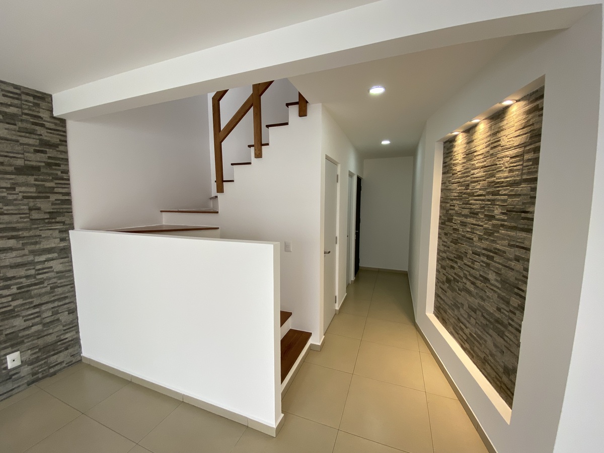 Sala, comedor, cocina equipada moderna con tope de granito, cuarto de lavado, calentador de paso, gas estacionario, 1/2 baño de visitas, Jardín privado, bodega en cochera y amplia bodega en el interior del inmueble, 2 cajones de estacionamiento.