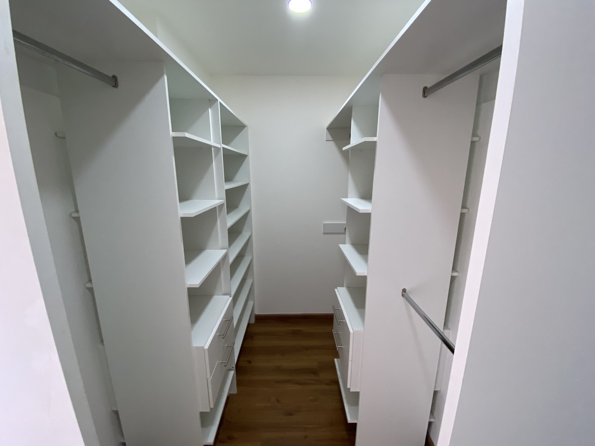 Recámara principal con vista abierta al área común con vestidor y baño completo, 2 recámaras con clóset y 1 baño completo compartido y family room.