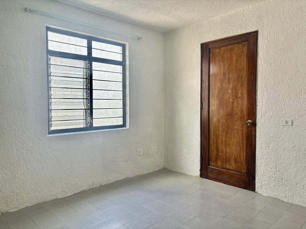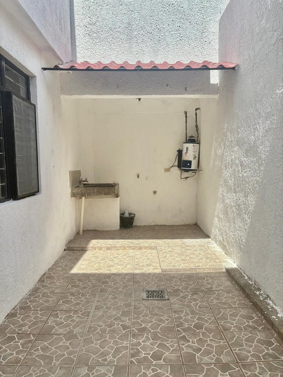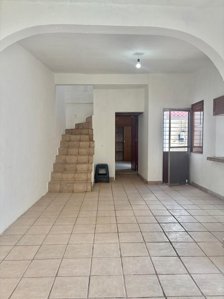 En planta baja, tiene cochera para un auto, sala comedor, cocina, patio de lavado, una recamara con closet y medio baño de visitas.