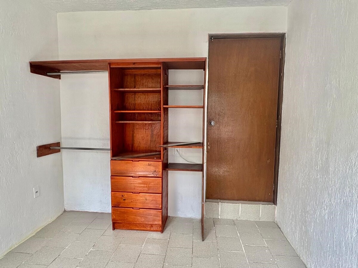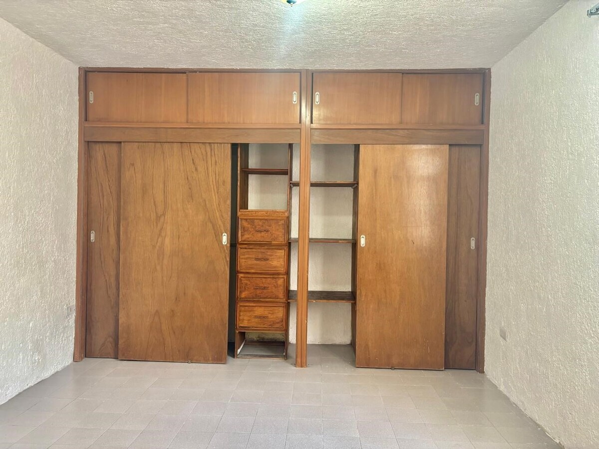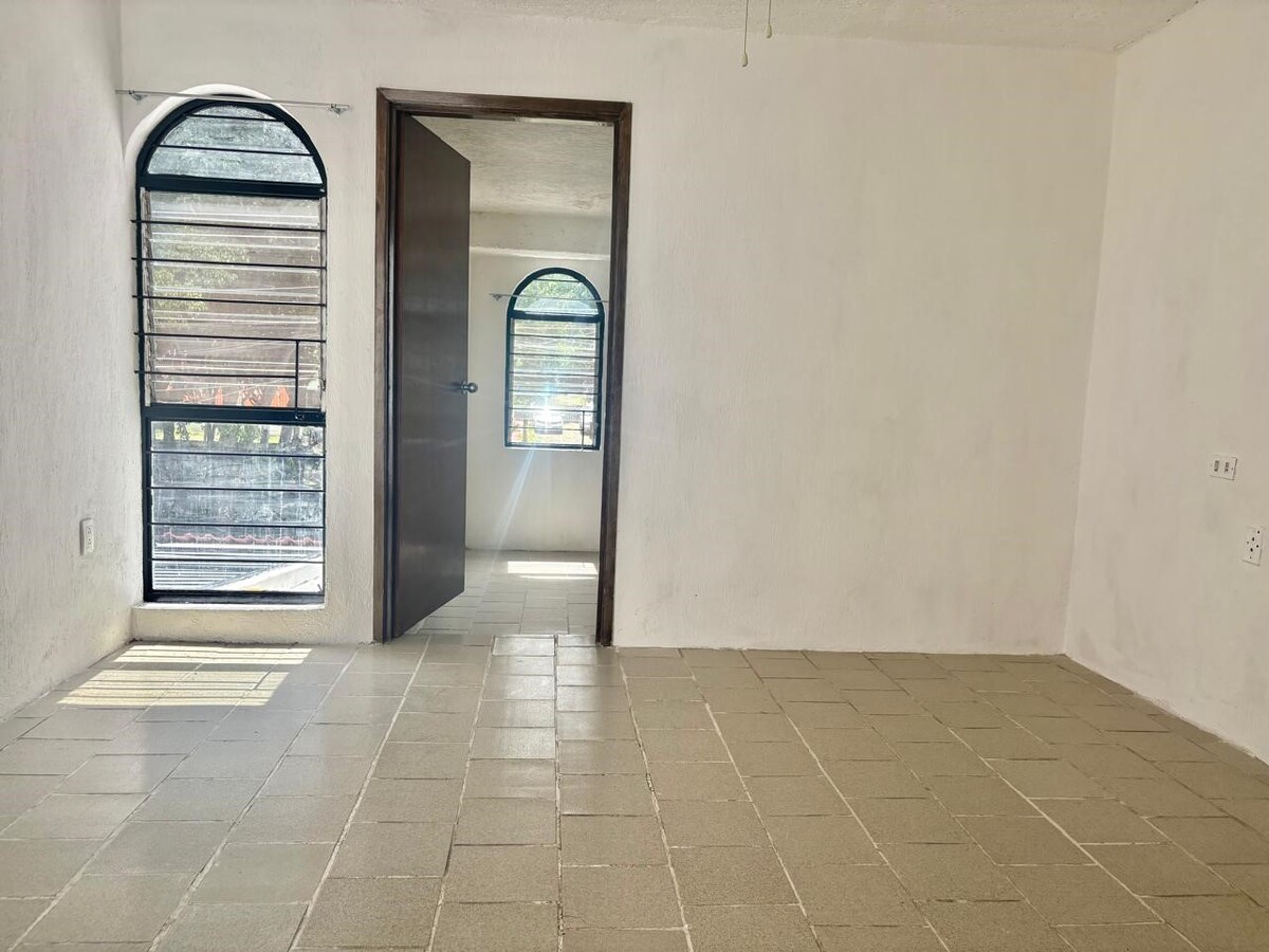 En planta baja, tiene cochera para un auto, sala comedor, cocina, patio de lavado, una recamara con closet y medio baño de visitas.