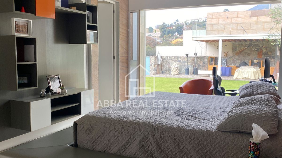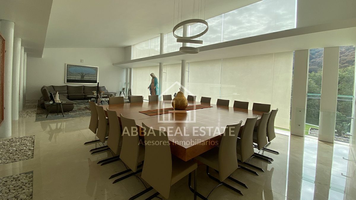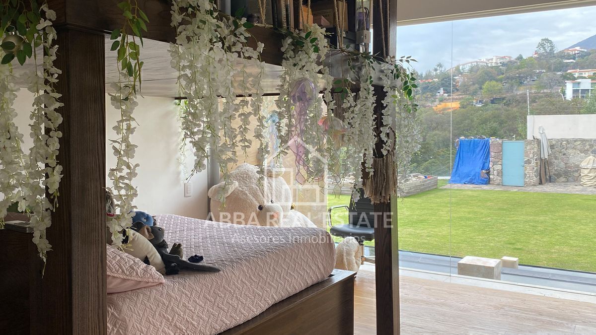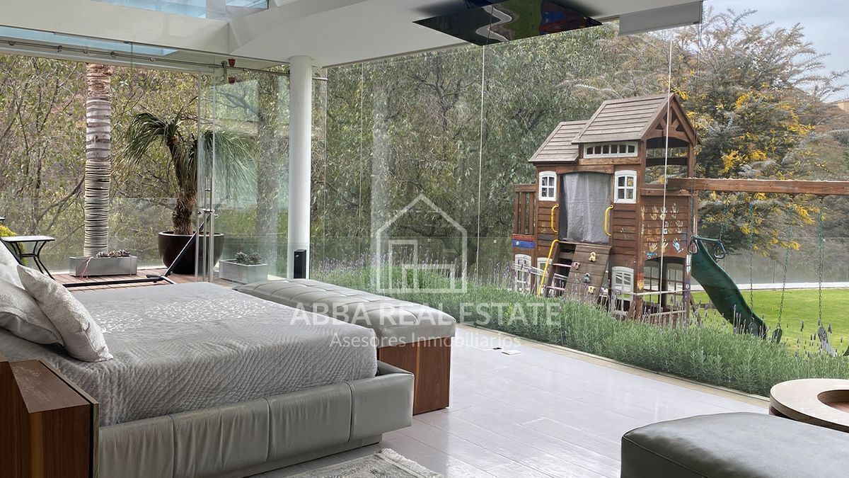 La casa cuenta con 3 recamaras cada una con su baño y vestidor, persianas con black out eléctricas, esta construida de tal manera que se pueden apreciar áreas verdes y boscosas, de todas las áreas de la casa, family en dos niveles con un despacho u oficina, sala y comedor muy amplias, área de bar privado frente a sala y comedor, cocina equipada de muy buen tamaño, alacena grande, antecomedor, salita de tv, terraza, cuarto de lavado muy amplio y área de tendido y 2 cuartos de servicio con baño completo, bodega muy espaciosa, salón de juegos con dos medios baños, salida al jardín y área de asador, el jardín colinda con área federal dividido por un rio, apreciaras sonidos naturales del rio y naturaleza un lugar de relajación y confort, con palapa con dos baños y un hoyo para hacer barbacoa.