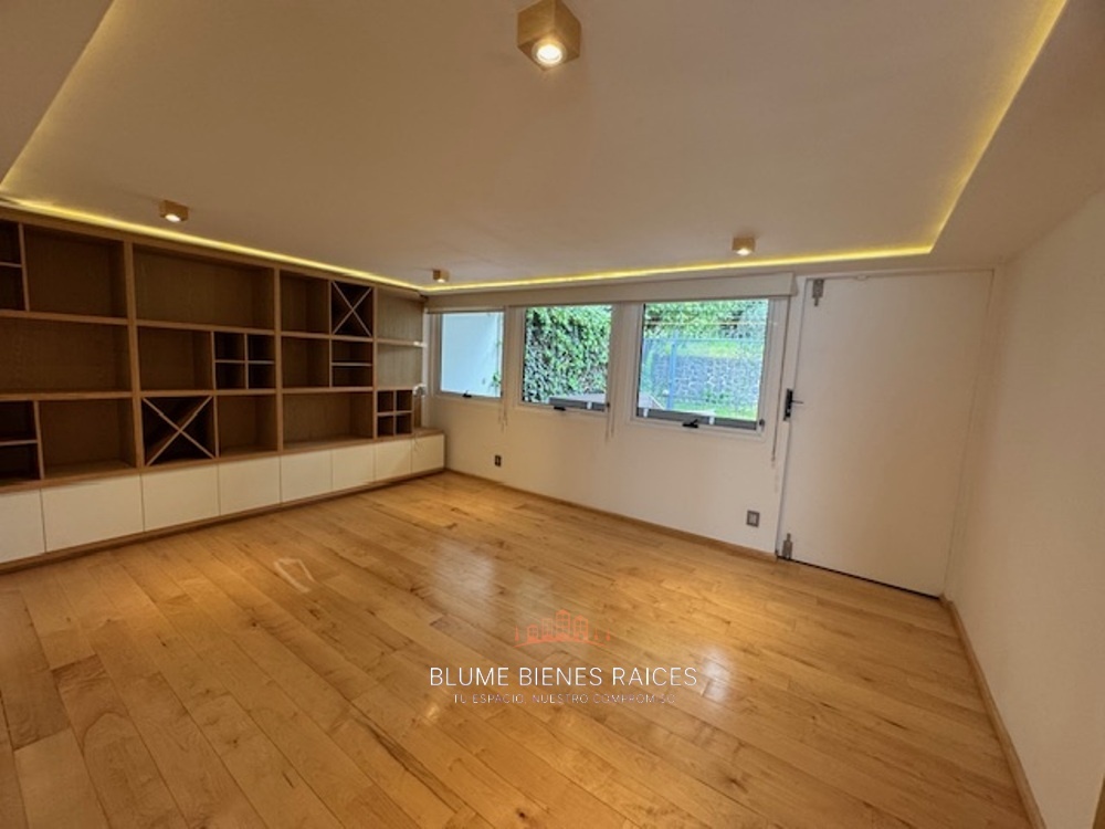 Renta de estupenda casa, ubicada en las mejores zonas en la parte baja de Lomas de Chapultepec-Virreyes, en calle cerrada con vigilancia las 24 horas. Los amplios espacios se integran cómodamente, en un total de 464 m2, 260 m2 son habitables; en 3 niveles: