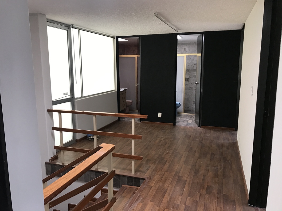 planta alta; recibidor con baño de hombres y de mujeres, cuatro privados de 4 x 3.5 m2 con amplia área para archivo, privado principal con baño completo.