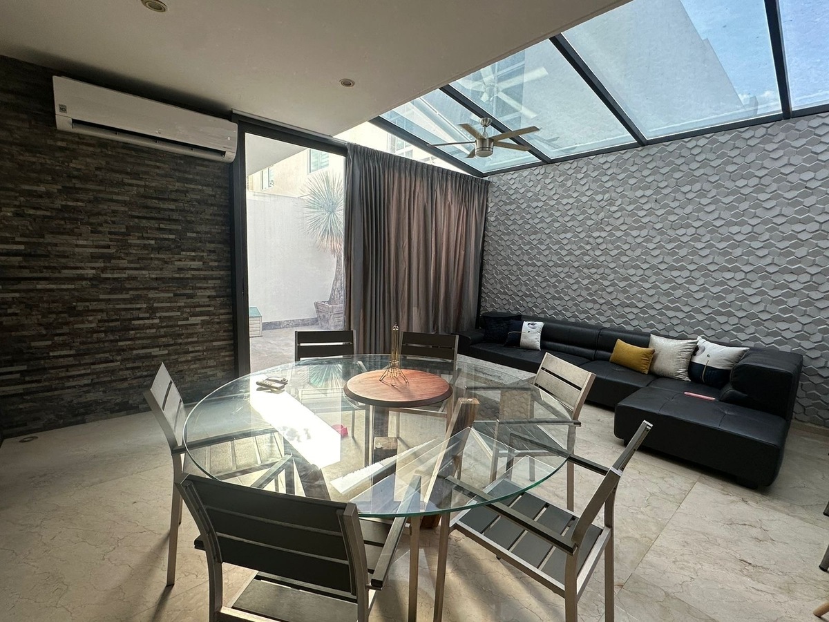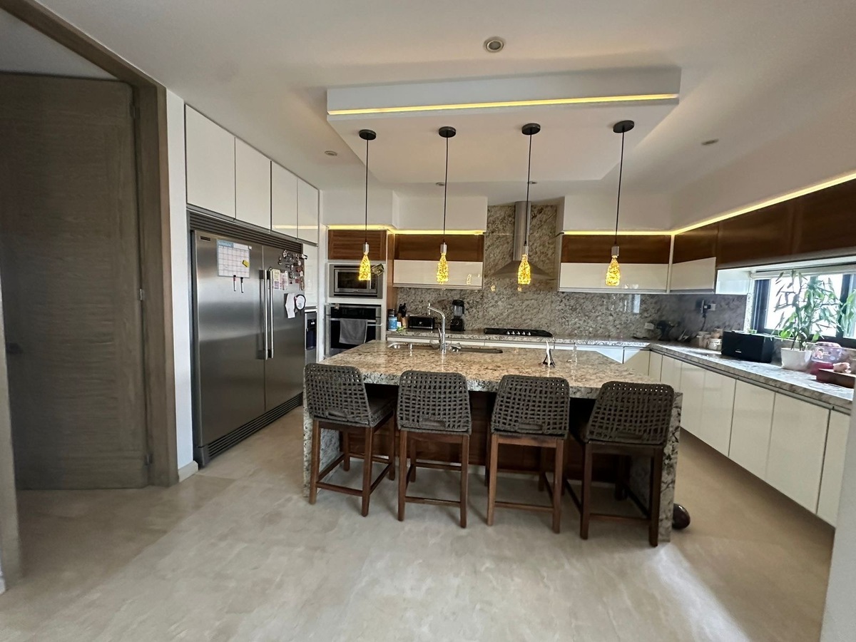 - Exterior: terraza amplia con barra y espacio para sala y comedor.