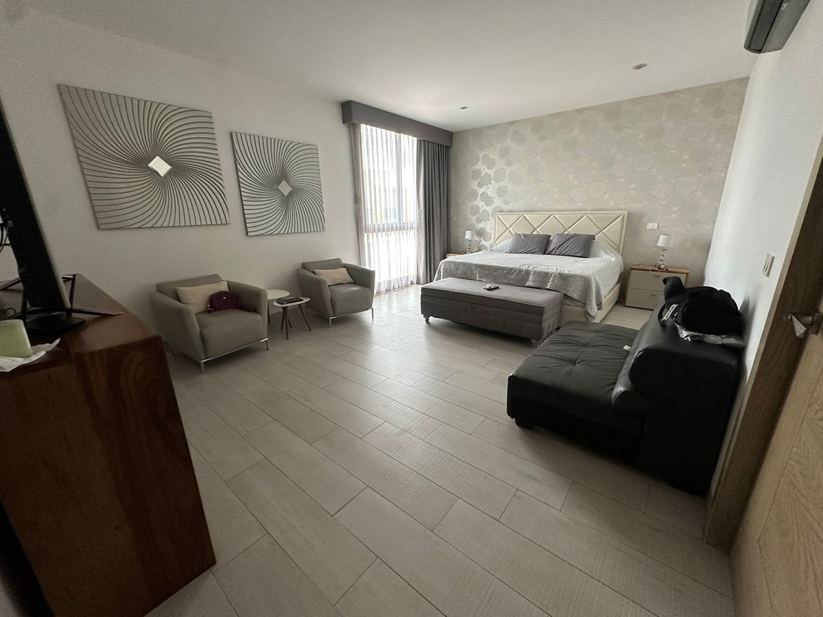 Discover this impressive rental house that combines luxury and comfort in every corner. With a living room, dining room, foyer, 3 bedrooms each with a bathroom and walk-in closet and air conditioning, family room, it offers an ideal space to enjoy with family. Its spacious construction of 350 m2 on a 250 m2 lot gives you the freedom you need. Large fully equipped kitchen with refrigerator and pantry. Basement with storage room, laundry area, service room, and study.