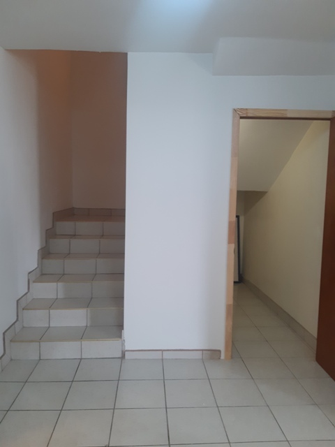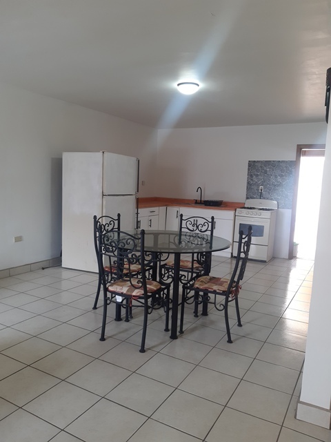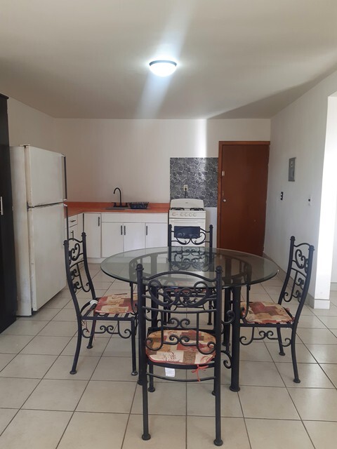 Ground floor: Fully equipped kitchen with stove and refrigerator, open-concept dining room, half bathroom, and two spacious living rooms that offer a cozy and functional atmosphere.