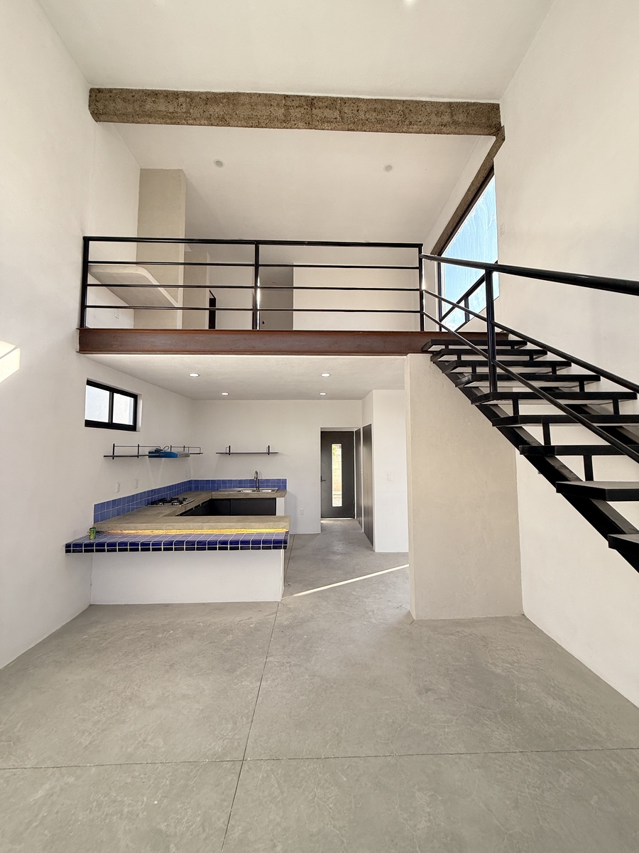 Preciosa casa tipo loft de una recámara, construida en un lote de 100 m² dentro de una privada tranquila y segura.