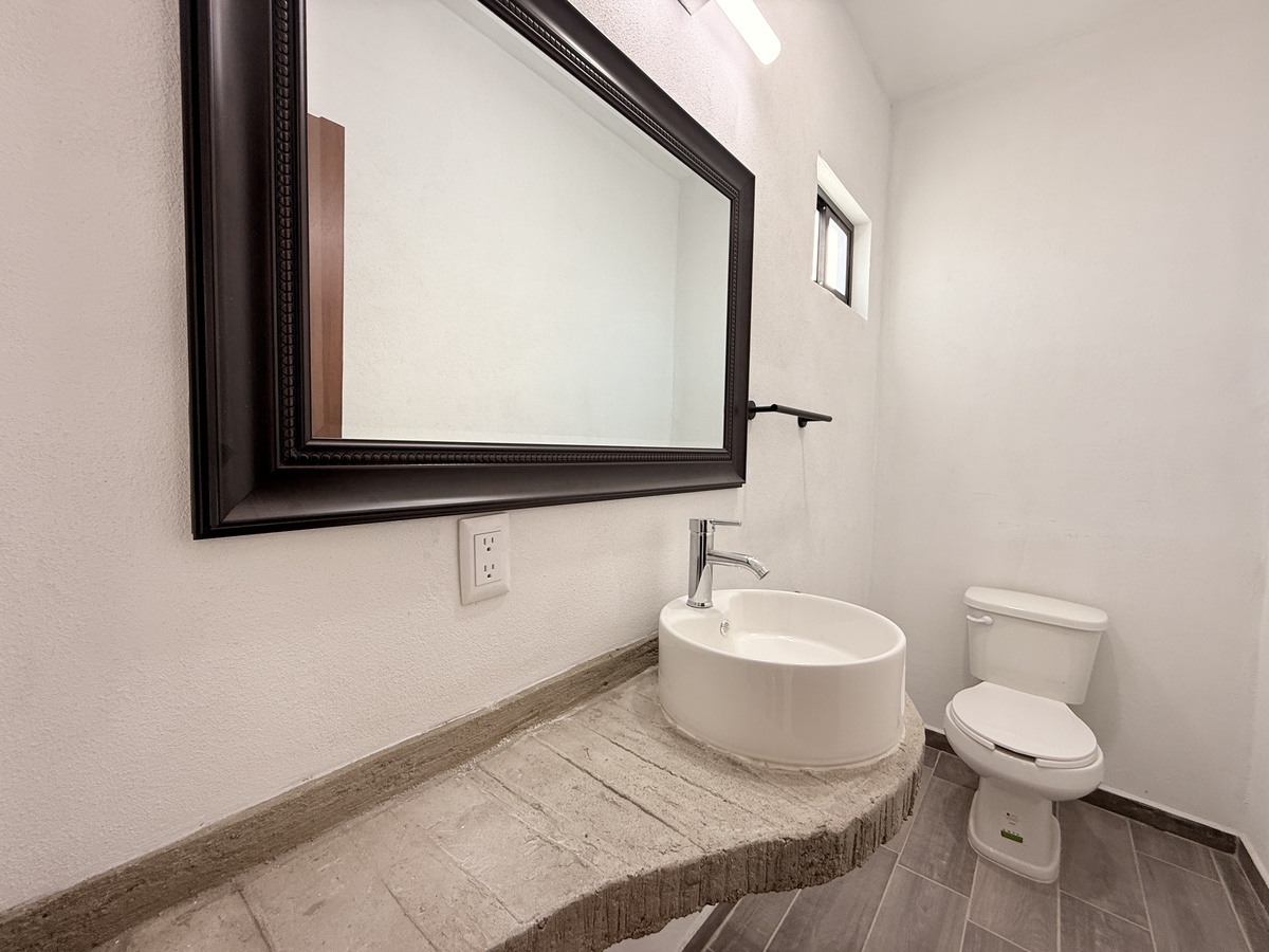 Planta baja: Sala y comedor de gran tamaño, cocina amplia con detalles de talavera que le brindan personalidad, medio baño, área de servicio con instalación para lavadora y una amplia alacena.
