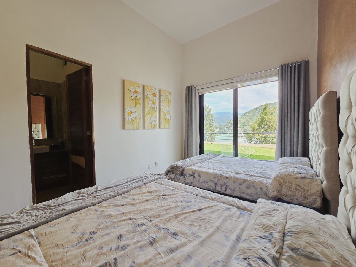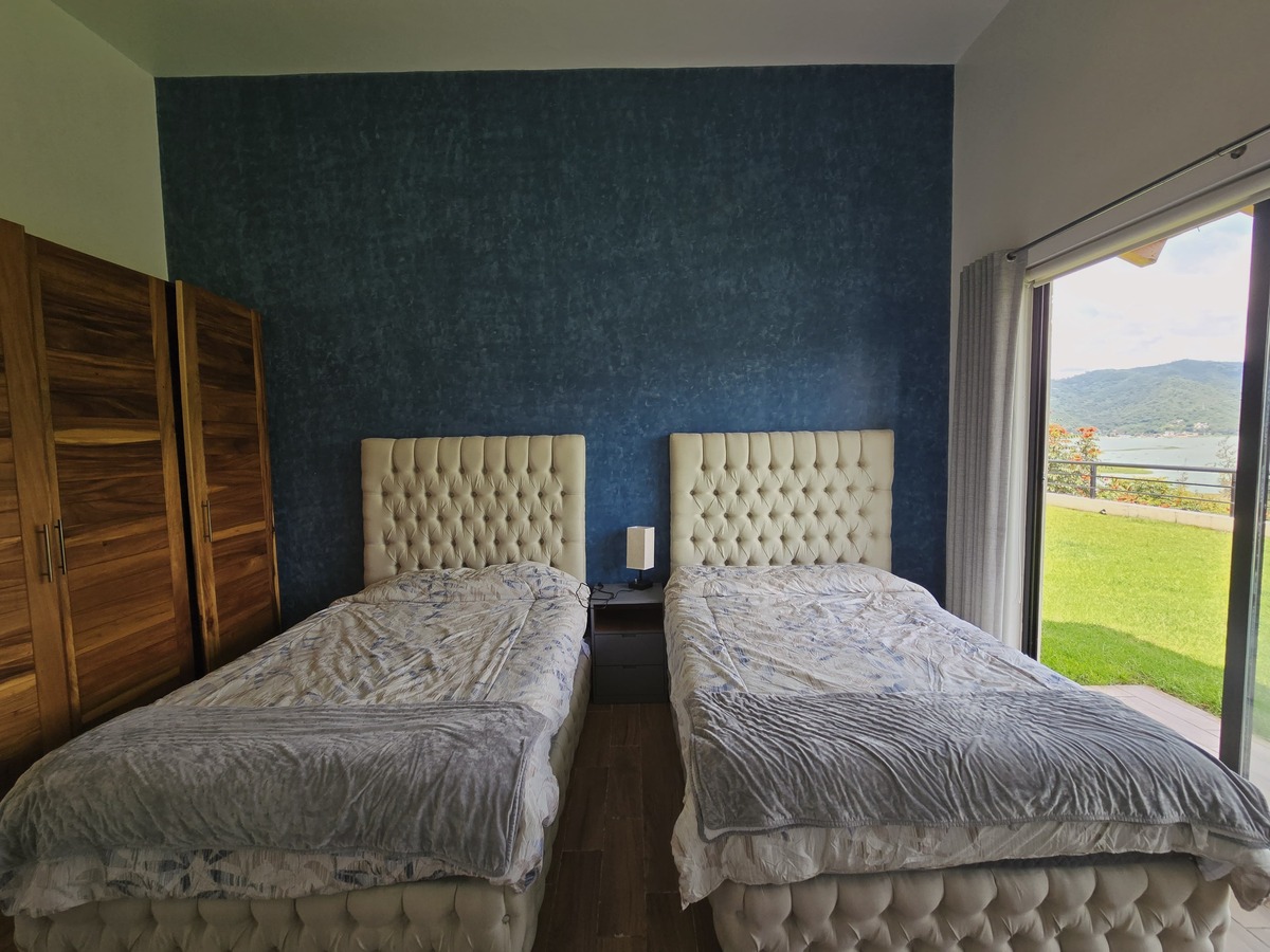 Tus 4 recamaras, todas con baño, la principal y una adicional con vestidor, todas las recamaras acceden a una gran terraza con césped y vista al lago. También cuentas con una sala de tv que podría funcionar como 5ta recamara, ya que cuenta con un baño independiente. Salida a gran terraza exterior, área con césped y vista plena al lago.