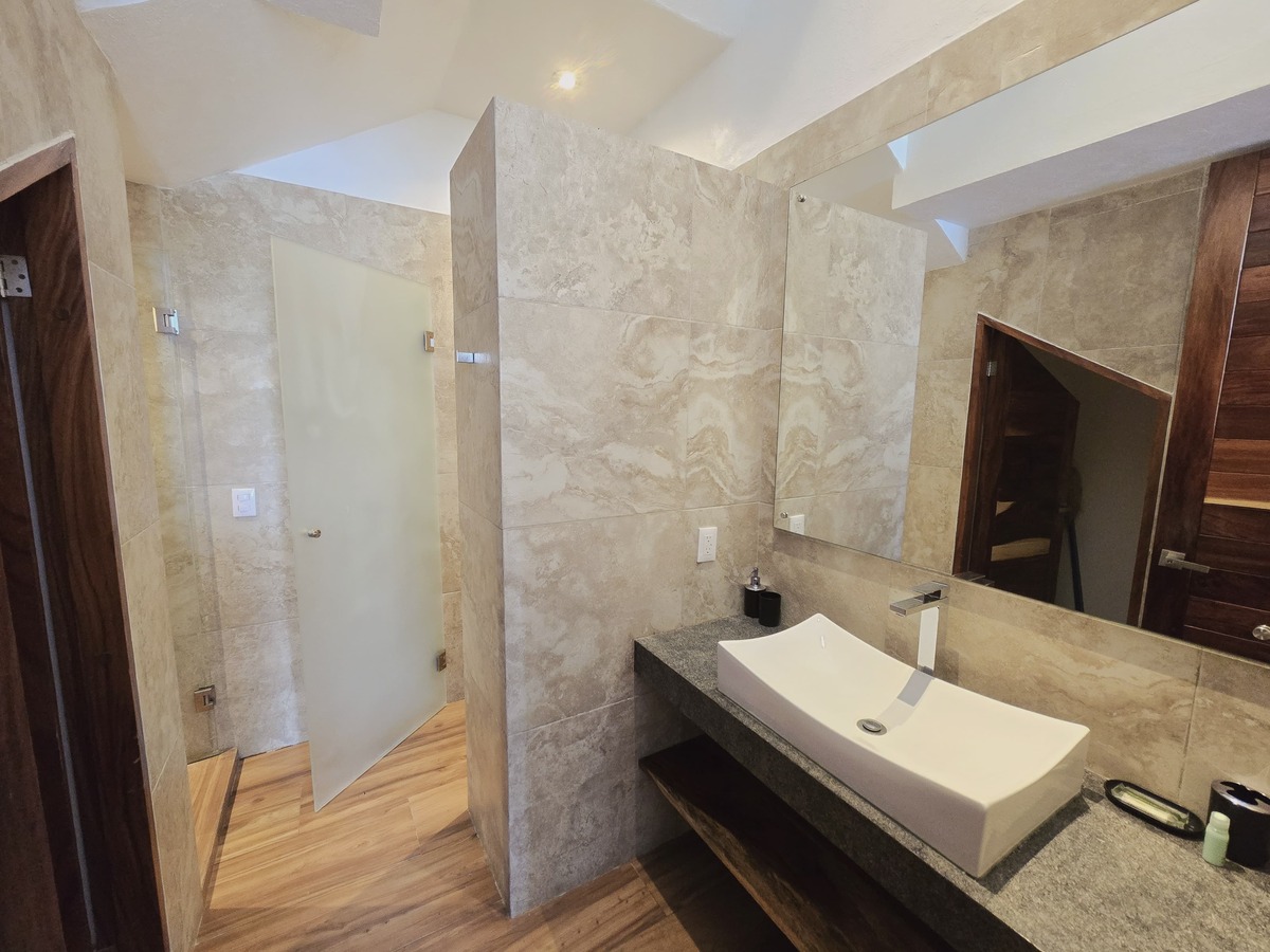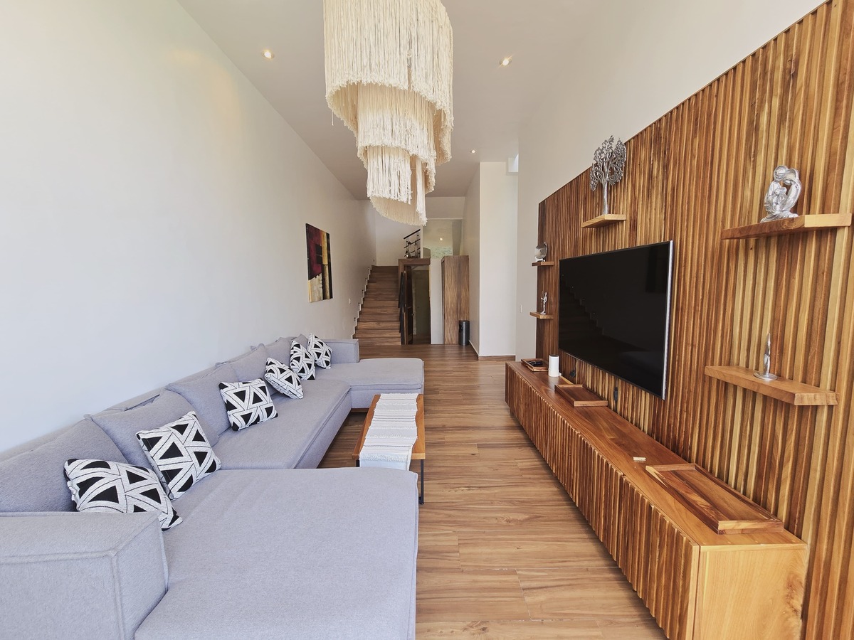 En el exterior, tu alberca con jacuzzi (el agua se calienta a través de paneles solares), zona de asador a la altura de tu alberca, con comedor para 8 personas, terraza para asoleadero, sala exterior techada que se comunica con zona de tv interior.