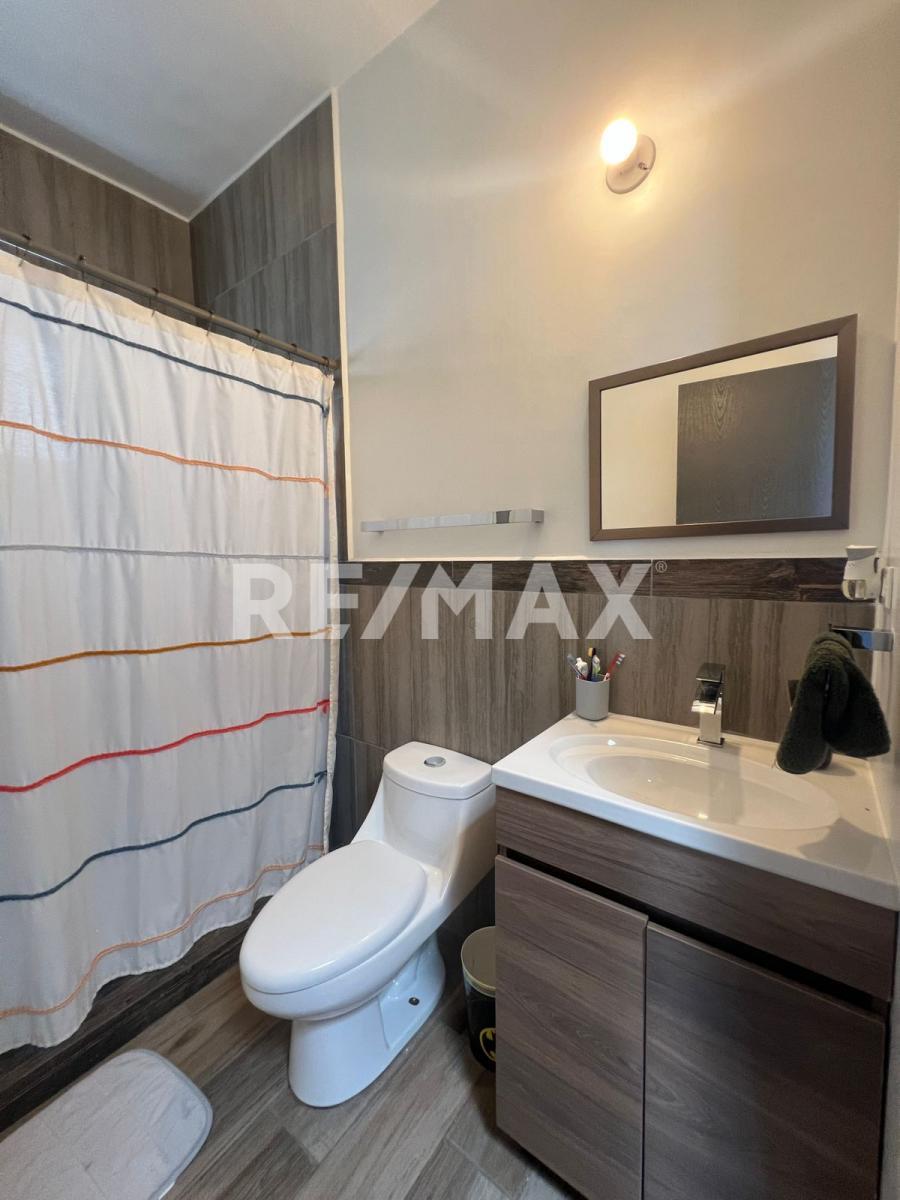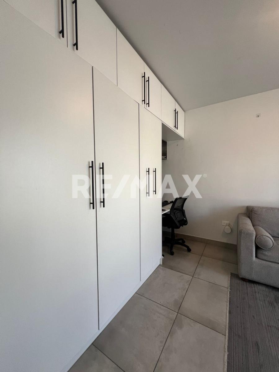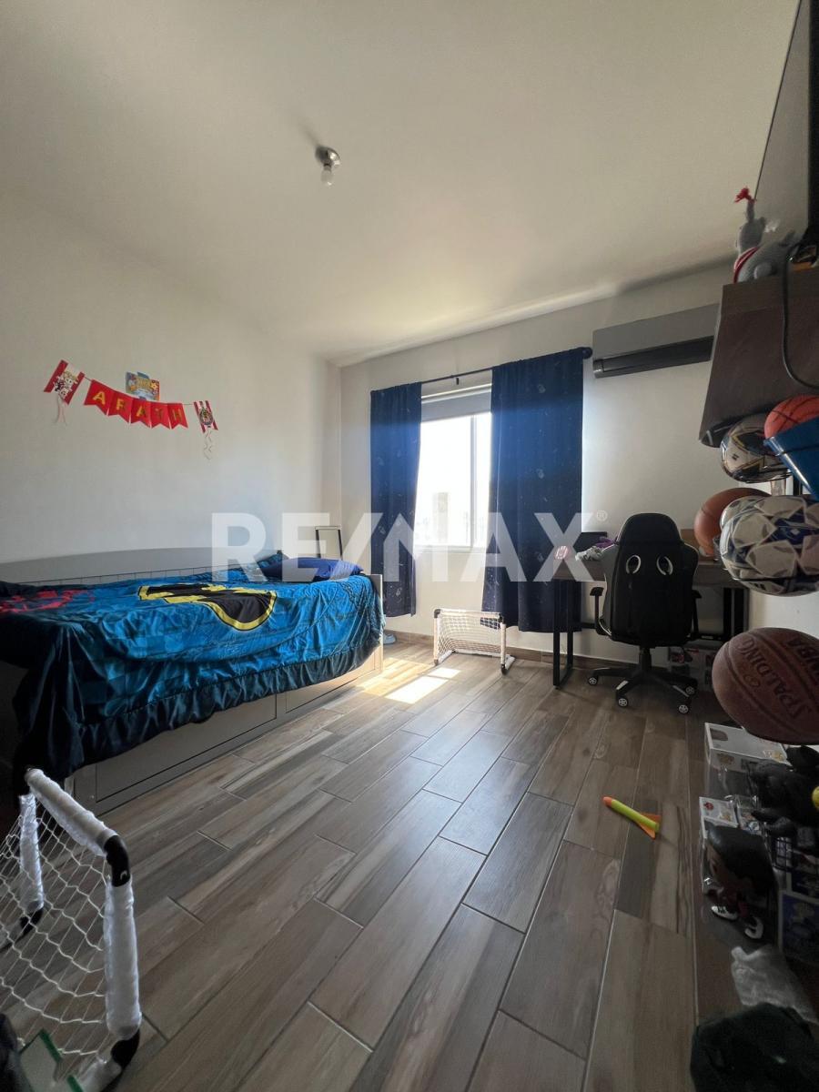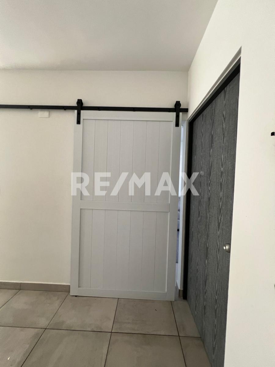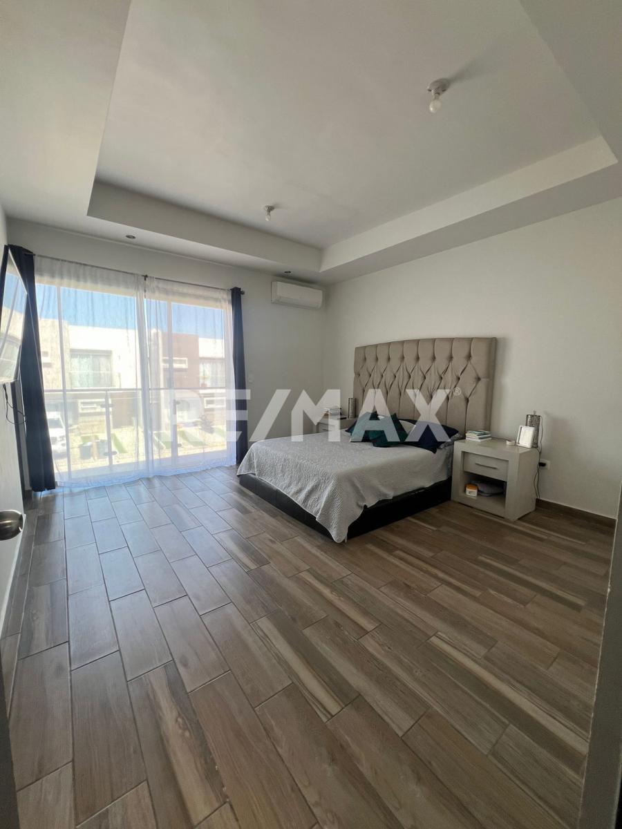Recámara principal en planta baja, equipada con clóset y aire acondicionado.