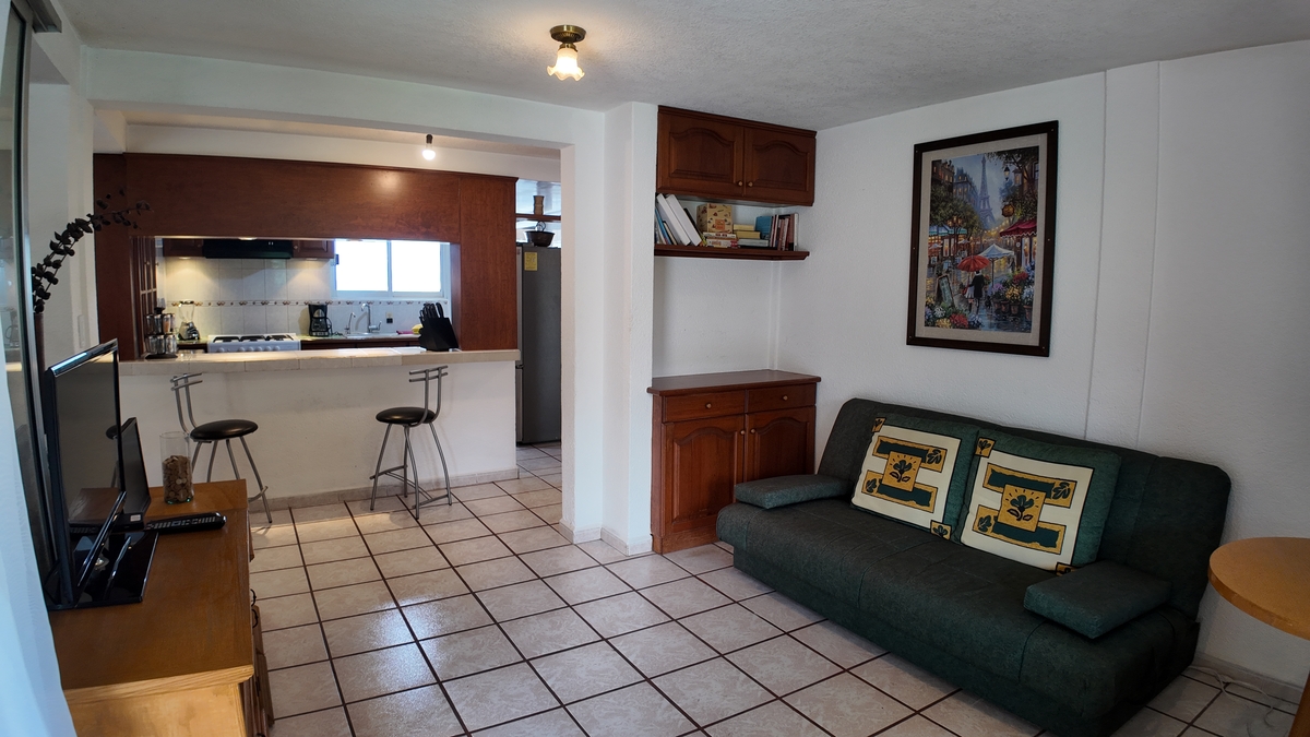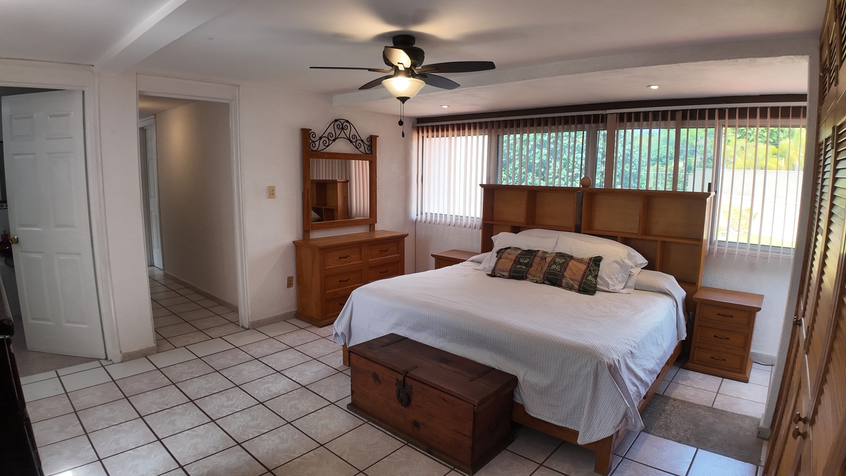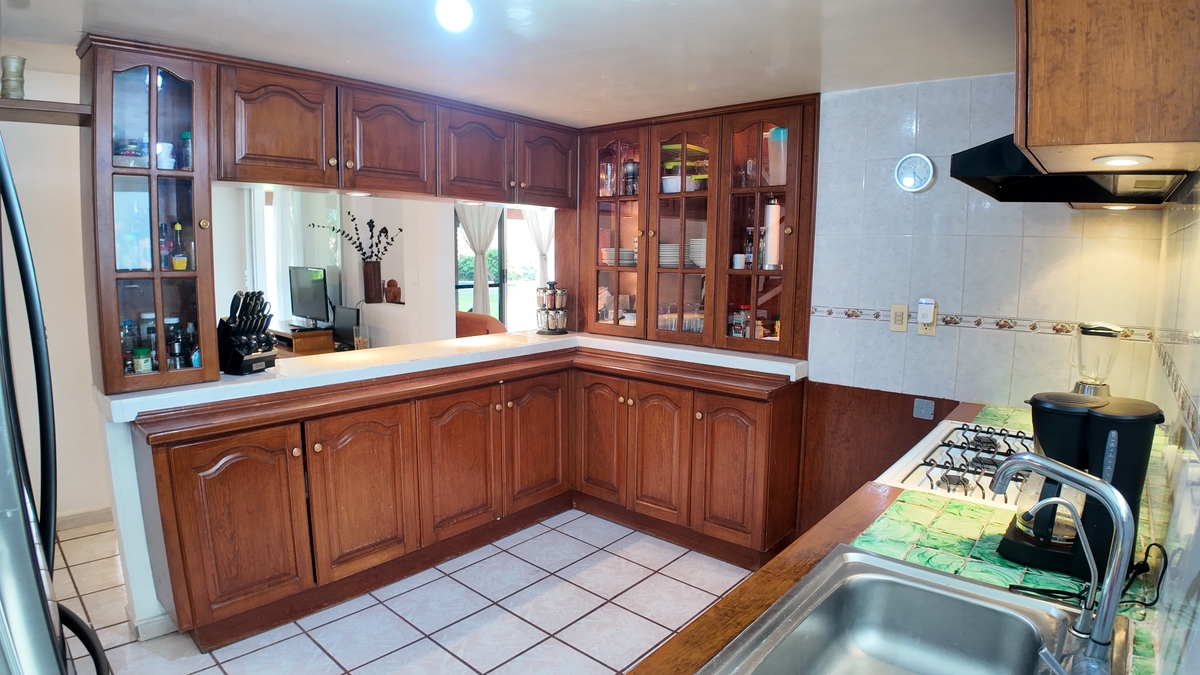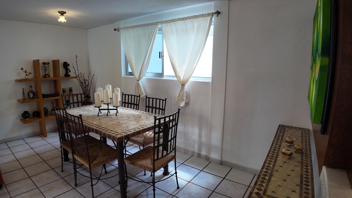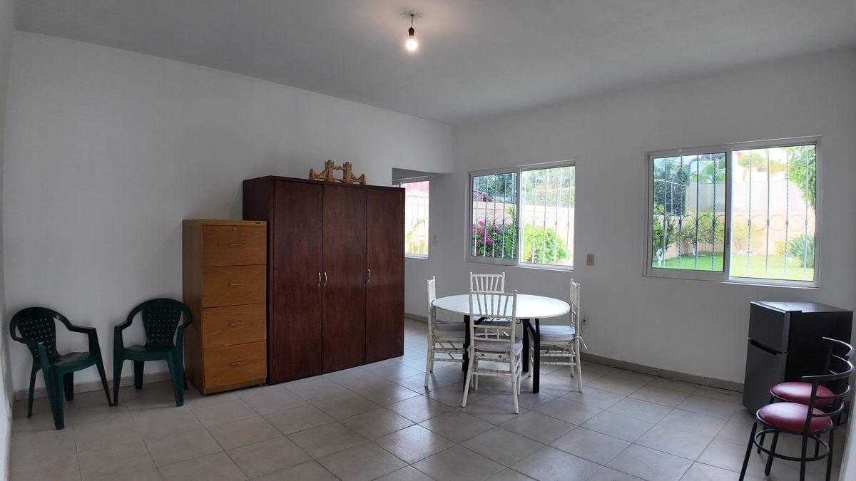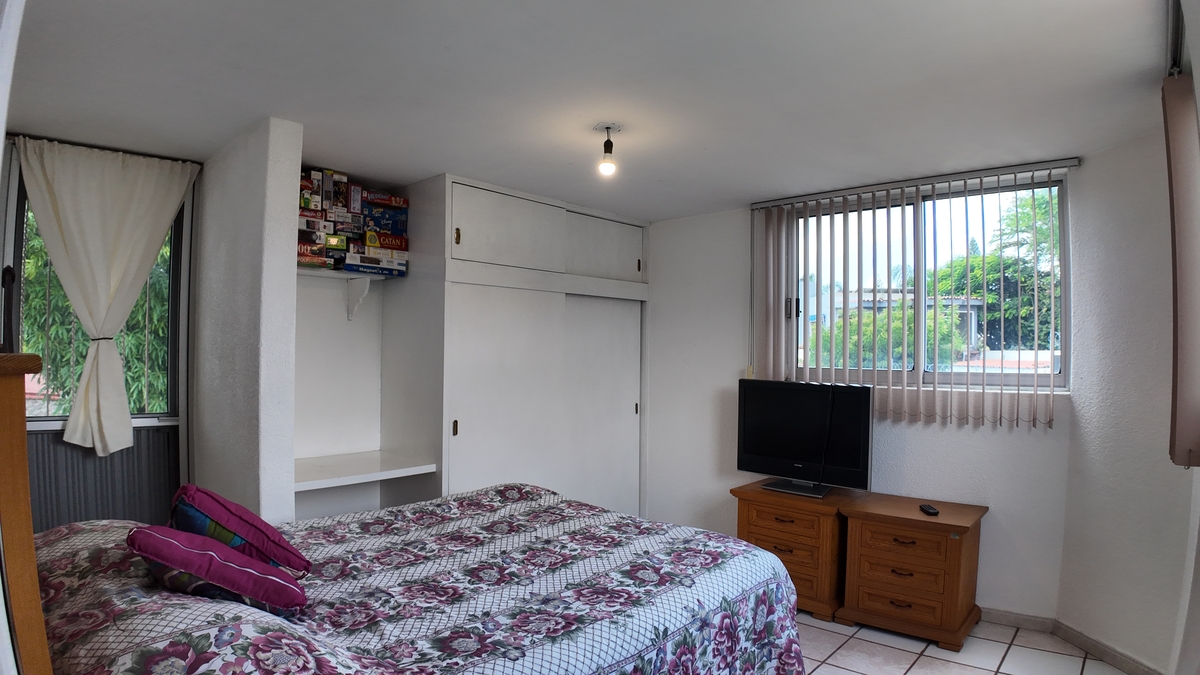 Nice Cuernavaca style house, with 3 bedrooms, the main one has a bathroom, all on the second level, living room and dining room, study, semi-equipped kitchen with a bar and door leading to the service area. Very large covered terrace with a grill overlooking the pool, 6 uncovered parking spaces, bungalow of approx. 50m2 with bathroom.