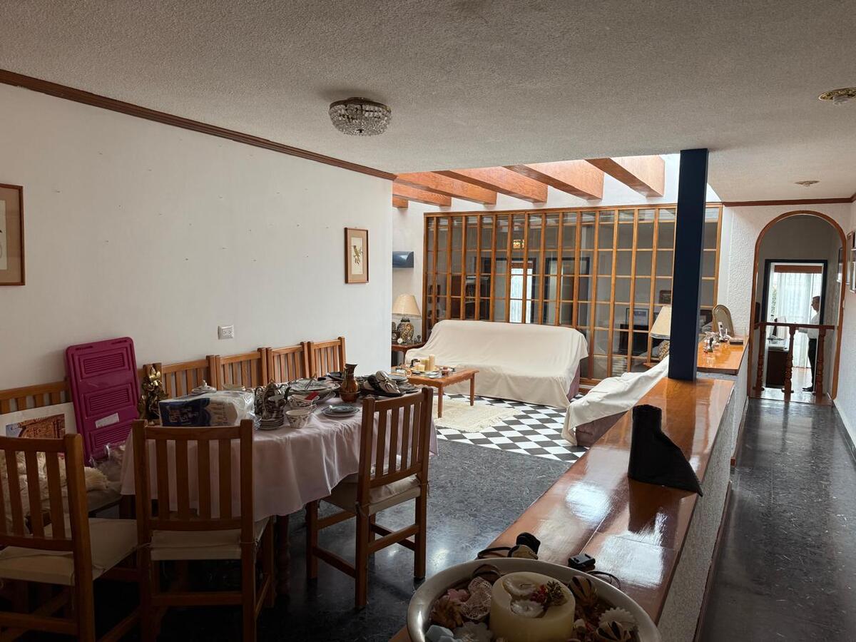 Amplio vestíbulo a la entrada, medio baño, sala, comedor, grandes espacios para otra sala informal, además de tener una área para T.V.