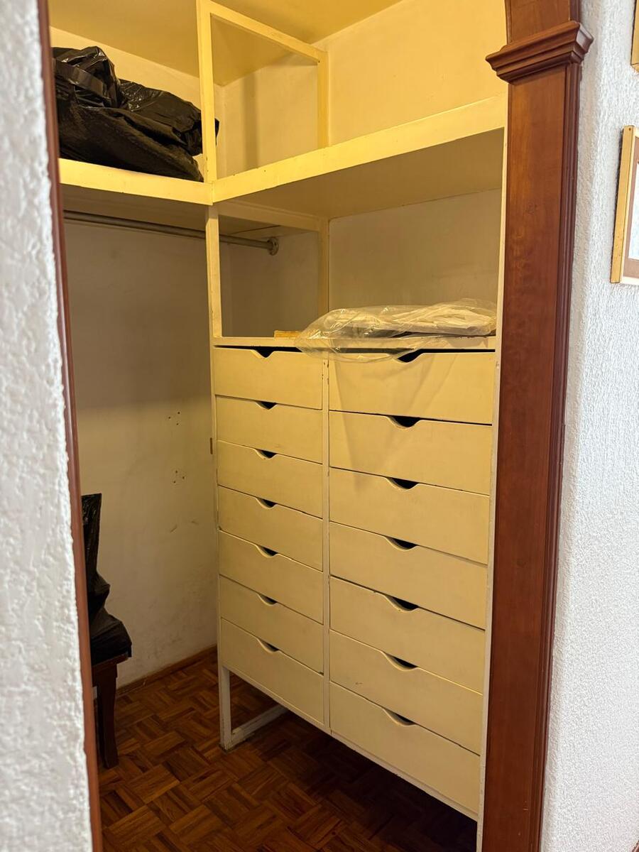 Tres habitaciones, la principal con vestidor y baño completo, las otras dos habitaciones con closet y baño común, closet de blancos.