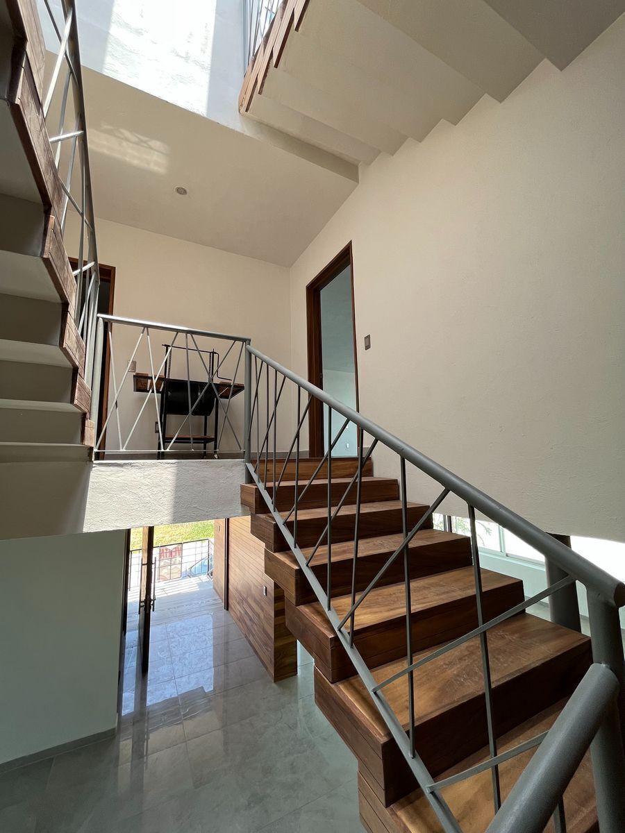 The ground floor has a living room with a privileged space with large windows and a dining room integrated into the kitchen area, which is super equipped with an oven and grill, as well as excellent quality granite countertops, porcelain floors of 120 x 60 cm. On the upper floor, you will find 3 bedrooms of privileged size, ideal for king-size beds; the main one with a walk-in closet and a bathroom with a massage shower; the secondary rooms also have luxury finishes, parota wood throughout the carpentry.