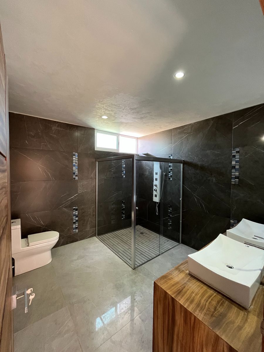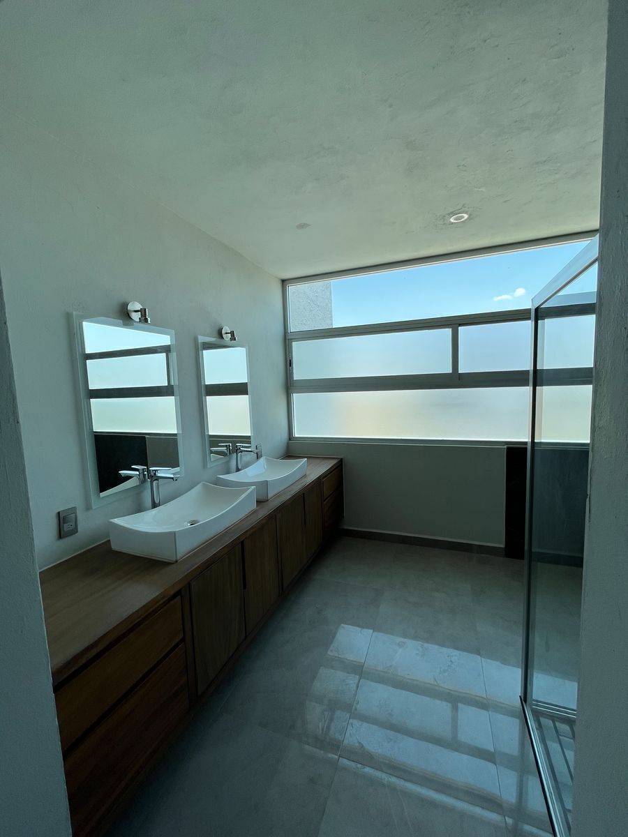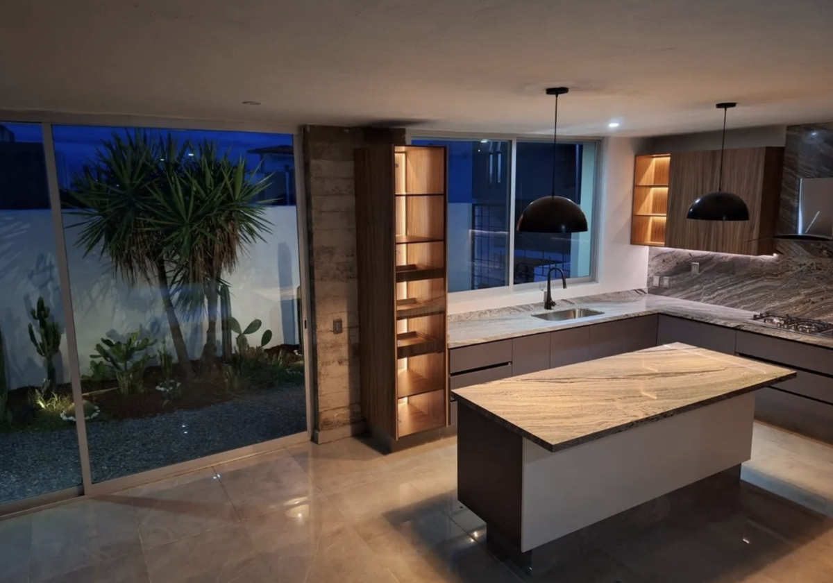 La PB cuenta con sala de espacio privilegiado con ventanales de gran tamaño y comedor integrado al área de cocina la cual está súper equipada con horno y parrilla, ademas cubiertas de granito de excelente calidad, pisos de porcelanato de 120 x 60 cm. En PA te encontrarás con 3 recámaras de tamaño privilegiado, ideales para camas king size; la principal con walking closet y baño con ducha de masaje; las habitaciones secundarias cuentan también con acabados de lujo, madera de parota en toda la carpintería.