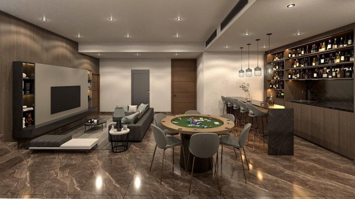 🌆 Área social exterior techada con barra de granito, preparación para refrigerador, tarja y asador | 🎱 Sala de juegos con área de bar | 🚻 Baño completo | 📦 Bodega | 🌞 Área social sin techar | ⚡ Área de equipos y paneles solares.