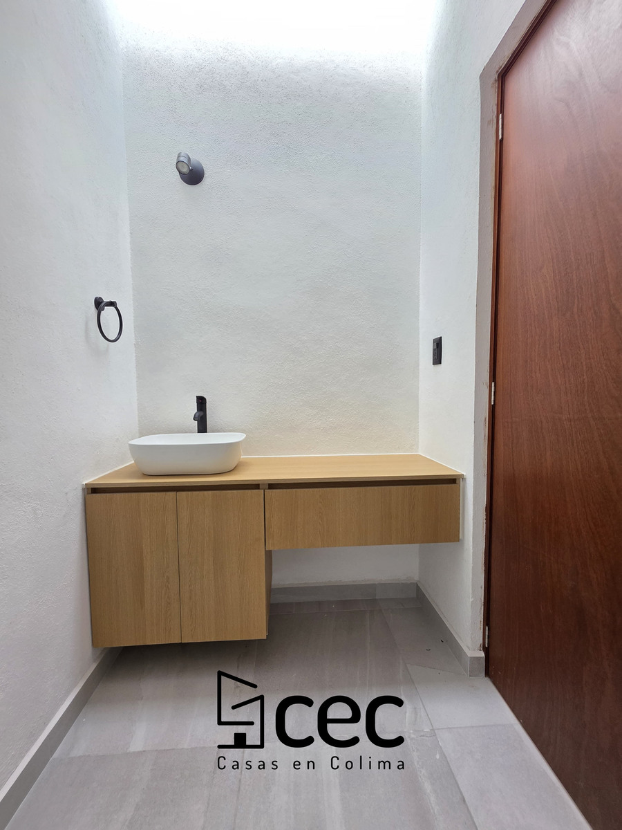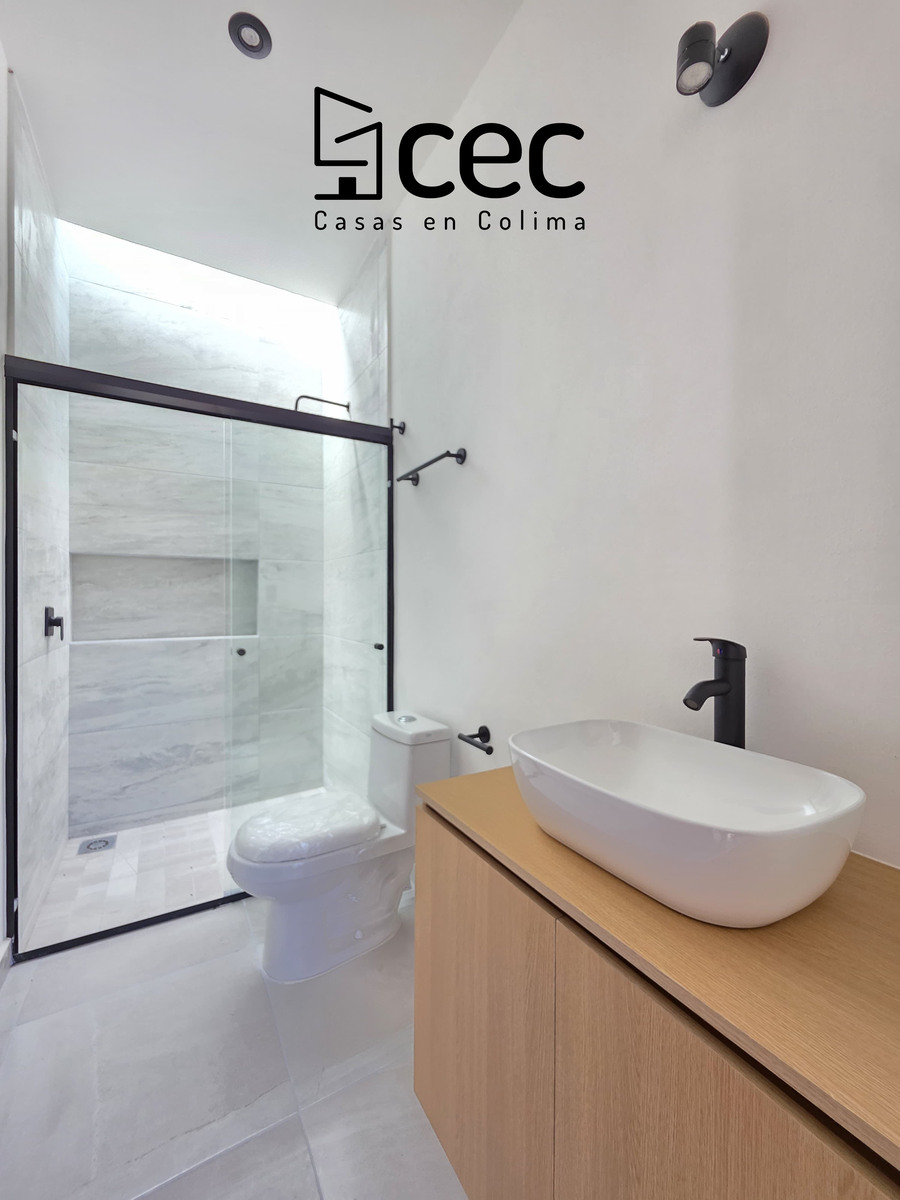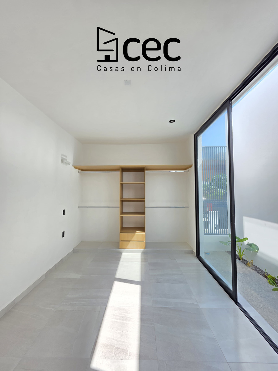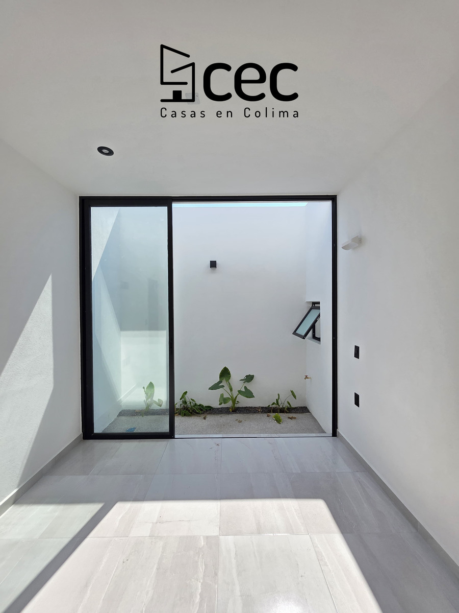 Casa en venta, 1 planta, 2 recámaras con closet y jardines interiores, 2 baños completos, recámara principal con baño propio, sala - comedor, cocina integral con barra de granito equipada con parrilla y lavabo, patio de servicio, preparación para aire acondicionado en sala - comedor y recámaras, instalación preparada para paneles solares, modernos acabados, luminarias led.