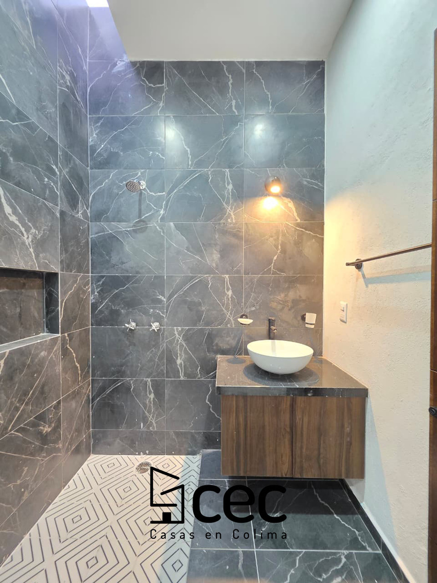 Casa de 2 plantas, 2 recámaras con closet, 1.5 baños, sala, comedor, cocina integral con barra de granito equipada con estufa y campana, patio de servicio, puerta de servicio con acceso lateral, amplio patio posterior con terraza techada al fondo, cochera para 2 autos, acabados de lujo, luminarias led.