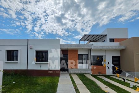 Casa de una planta, 3 recámaras, 1 baño, sala, comedor, cocina integral, patio posterior, modernos acabados, frente a jardín, protecciones al frente, zoclo de piso imitación madera, calentador de paso, cisterna y bomba de agua.