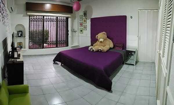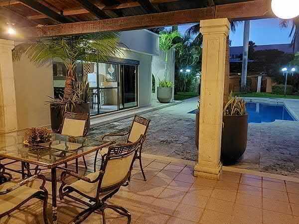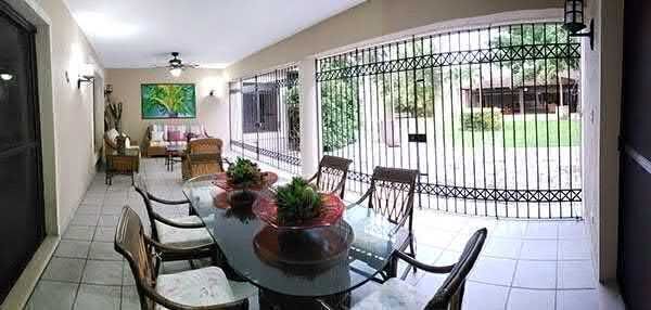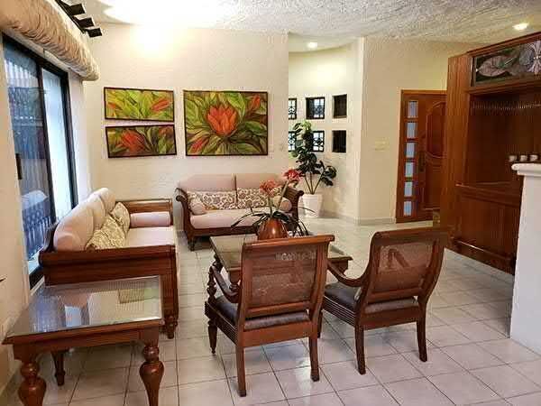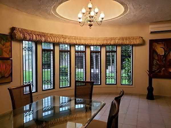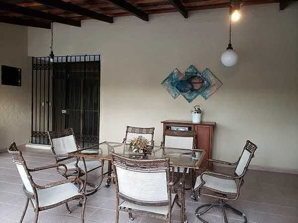 La propiedad cuenta con 3 recámaras con baño completo, sala y comedor amplios, cocina con barra desayunador, antecomedor y alacena. Incluye cuarto de servicio con acceso independiente, jardín con sistema de riego automático, piscina con terraza exterior, 2 medios baños en área de alberca y tejaban trasero para actividades al aire libre.