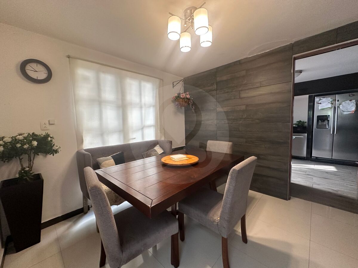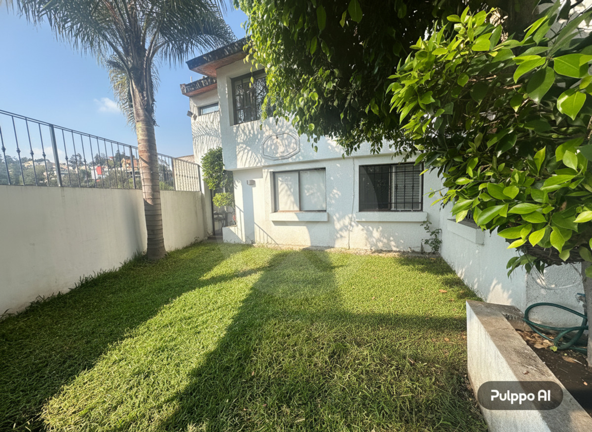 Cuenta con cocina equipada y desayunador, comedor y sala con terraza y un amplio jardín la terraza con asador y juego de jardín. estacionamiento para 3 autos.