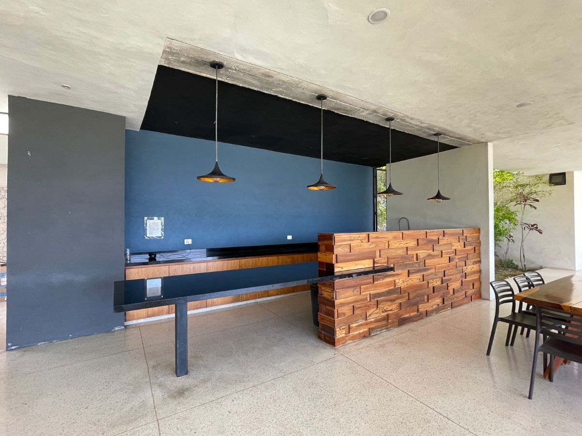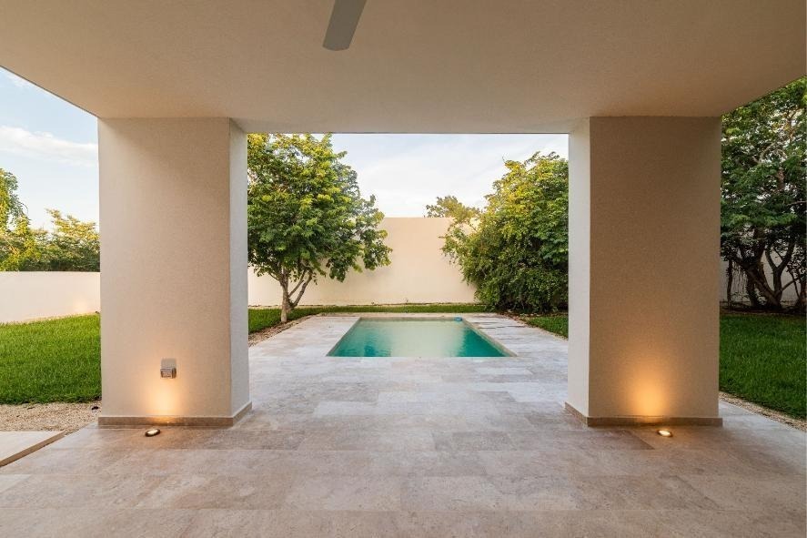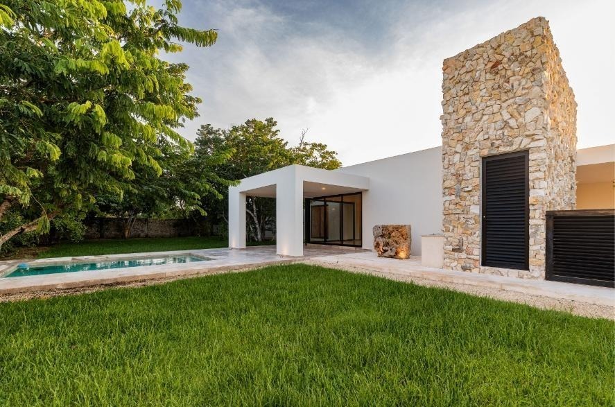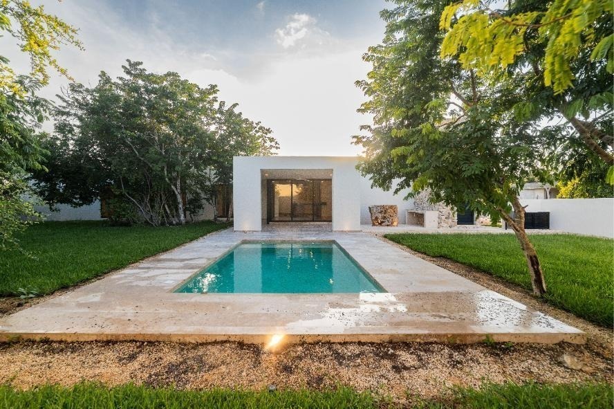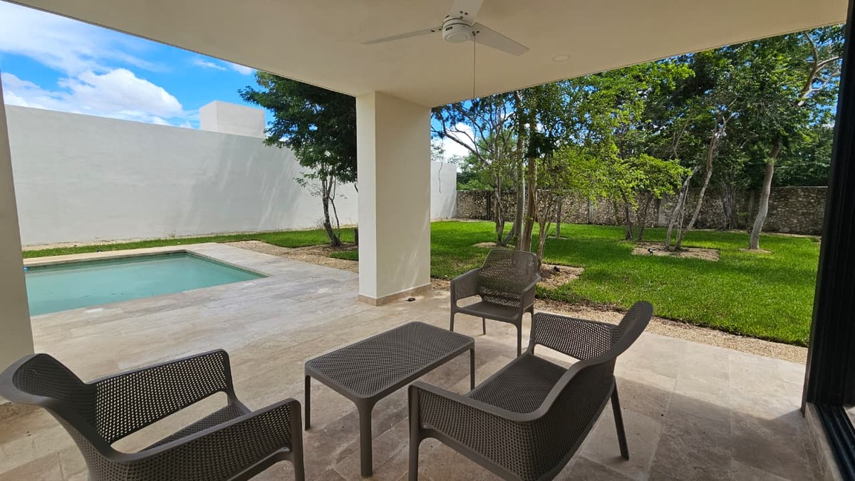 Beautiful one-level house in Dzidzil-há with living room, dining room, and kitchen in an open space concept with a wide view of the covered terrace and main garden.
