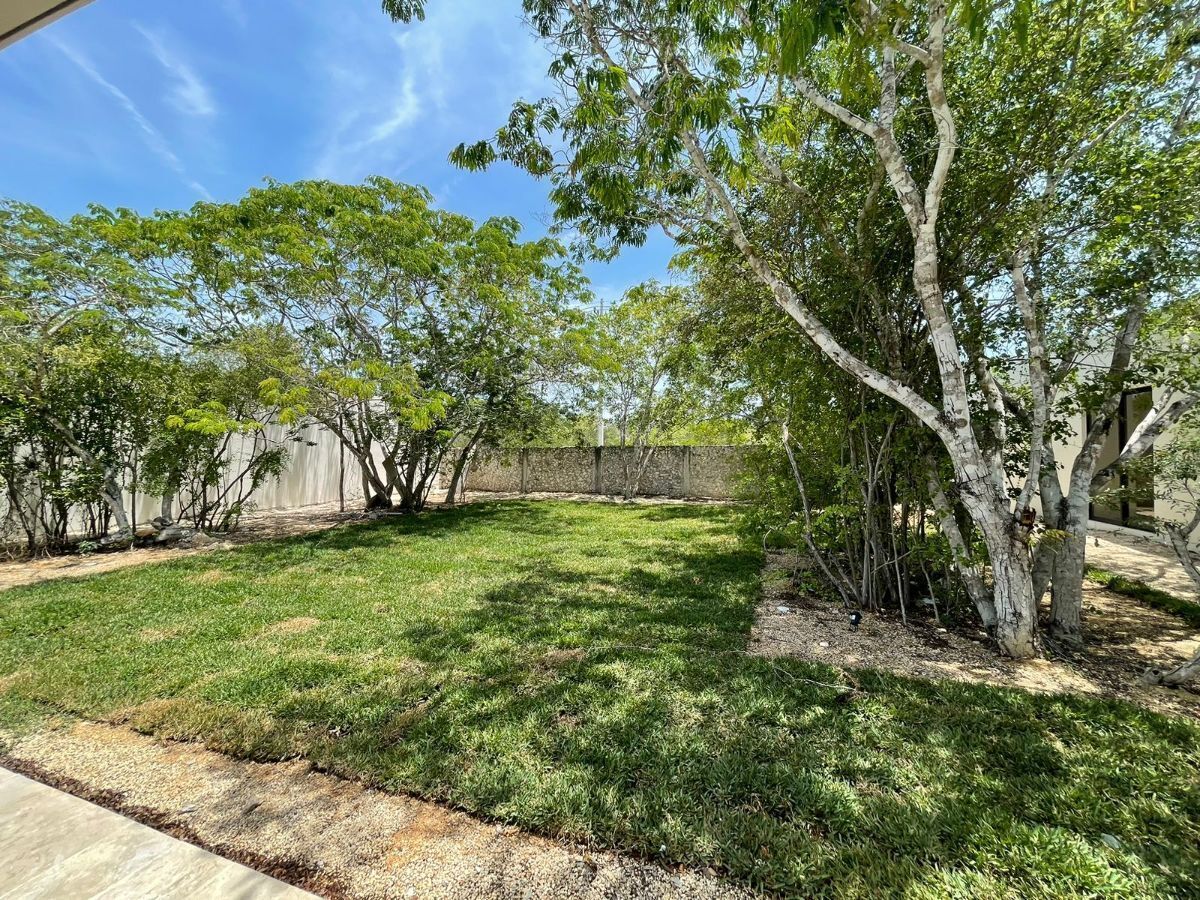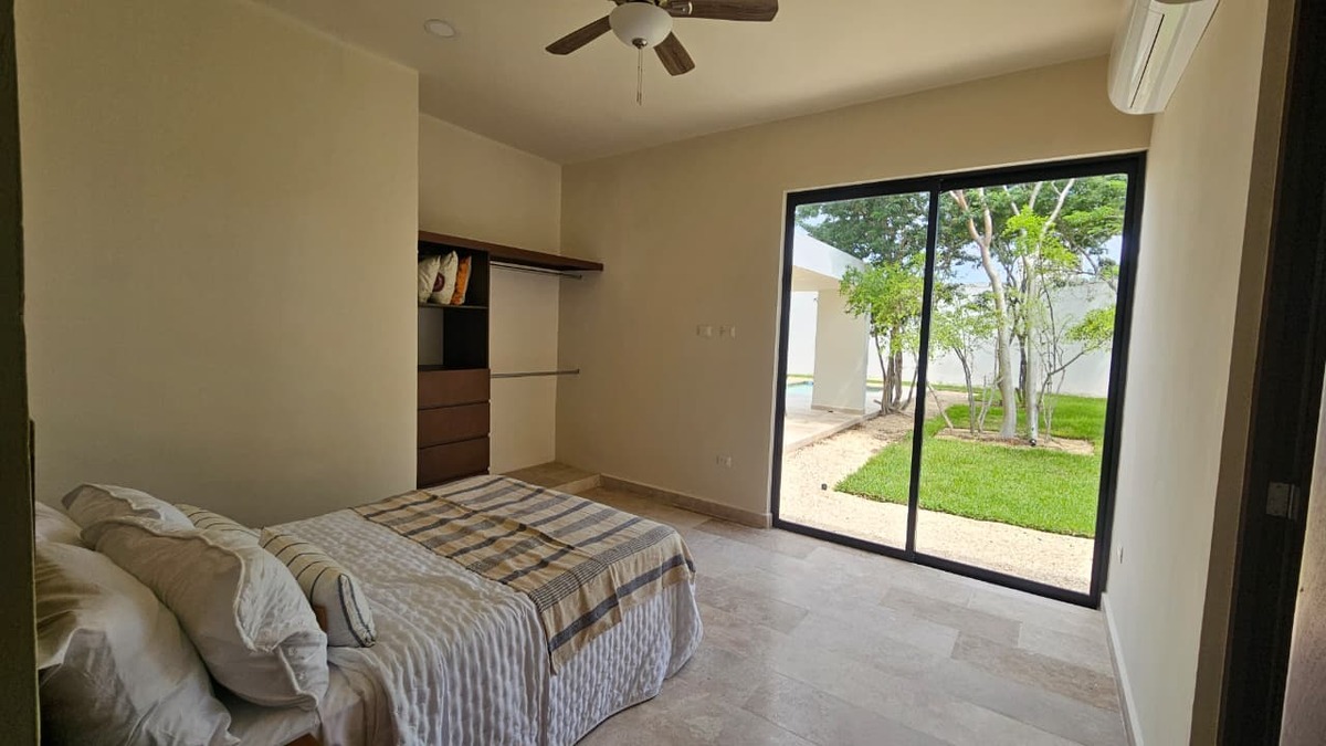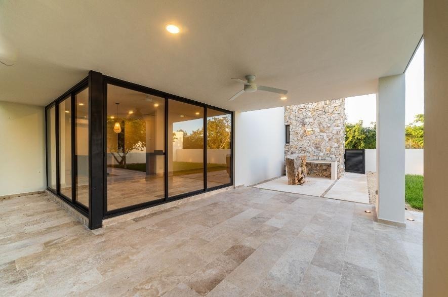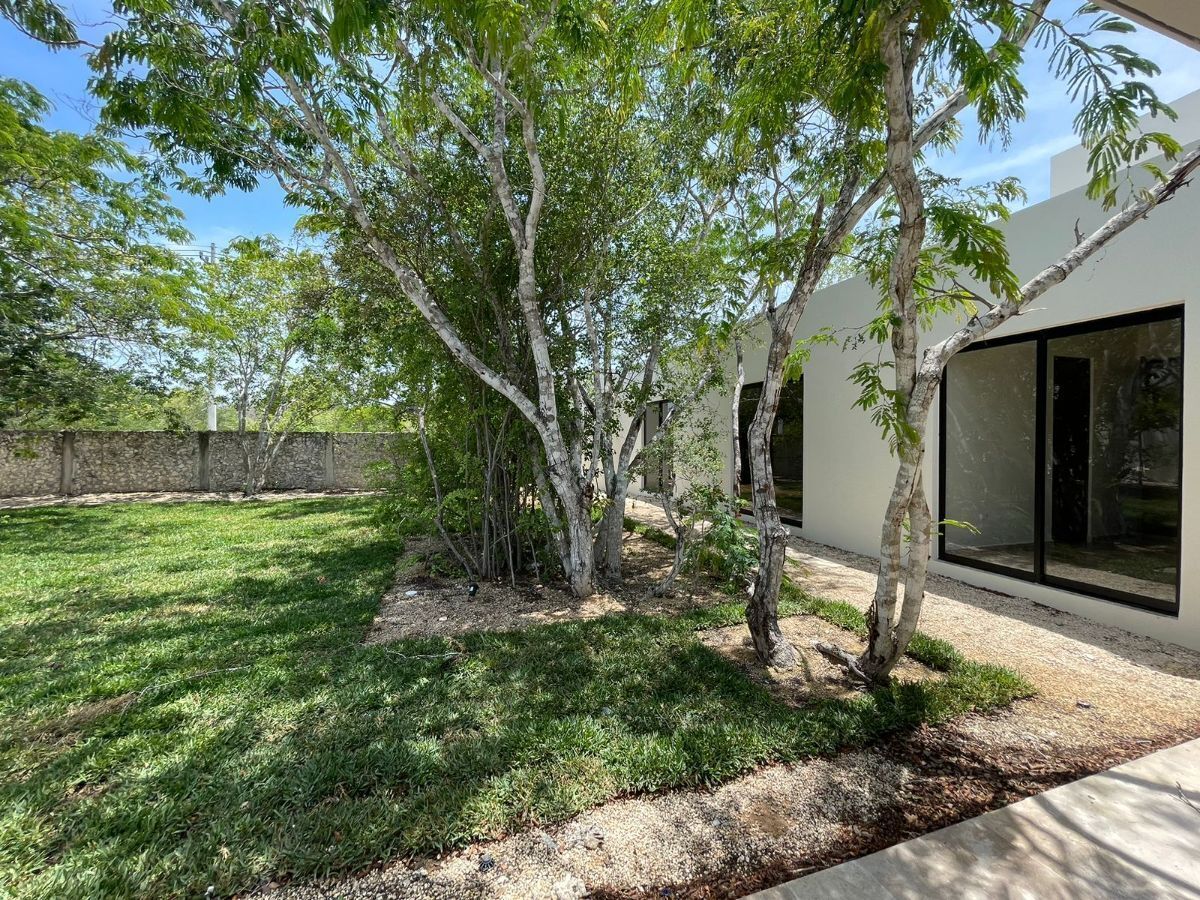 Beautiful one-level house in Dzidzil-há with living room, dining room, and kitchen in an open space concept with a wide view of the covered terrace and main garden.