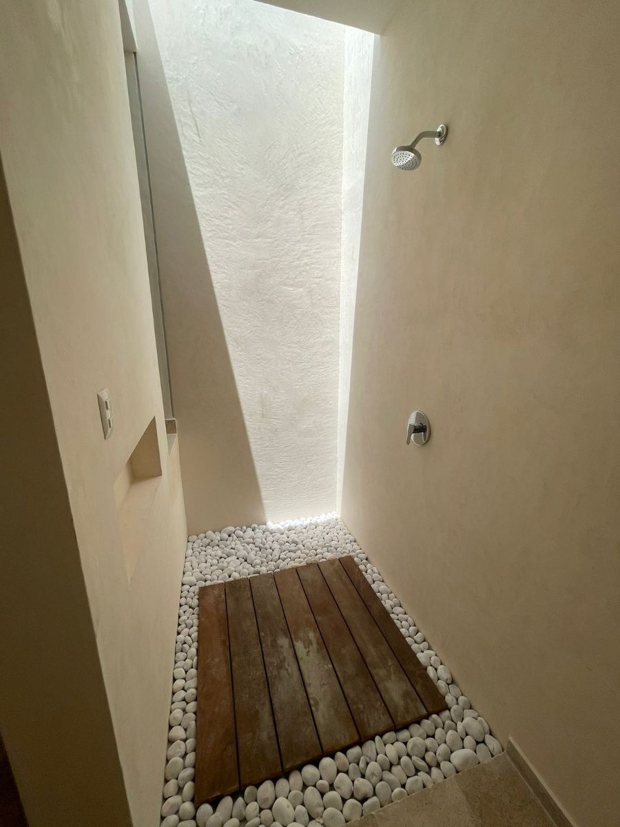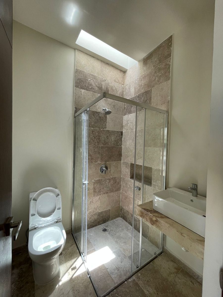- Mampara de cristal en áreas de ducha en baños de recámaras y baño de visitas