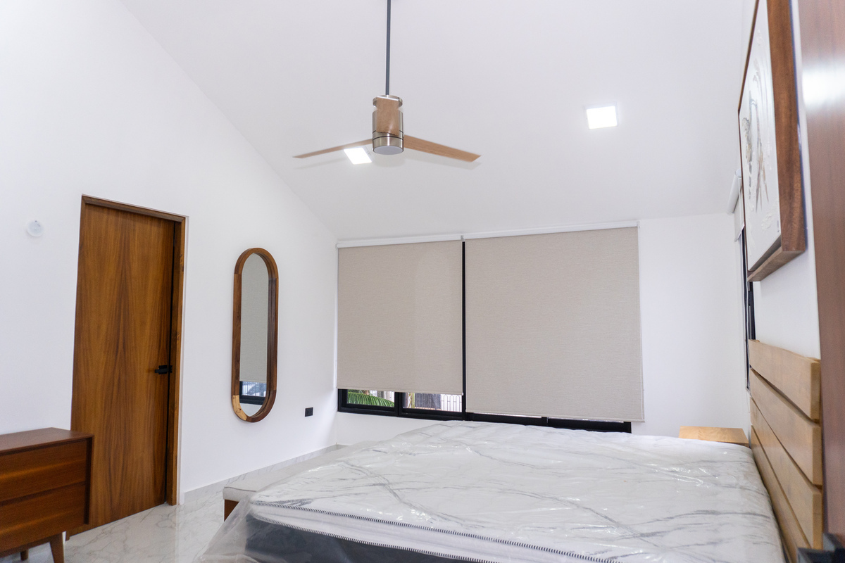 - Aire acondicionado tipo mini split inverter, ventiladores en todas las recámaras.