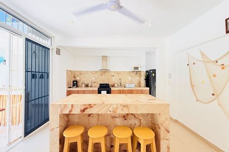 -Rooftop con Jacuzzi, área techada con camastros, baño completo, barra con tarja para trastes.
