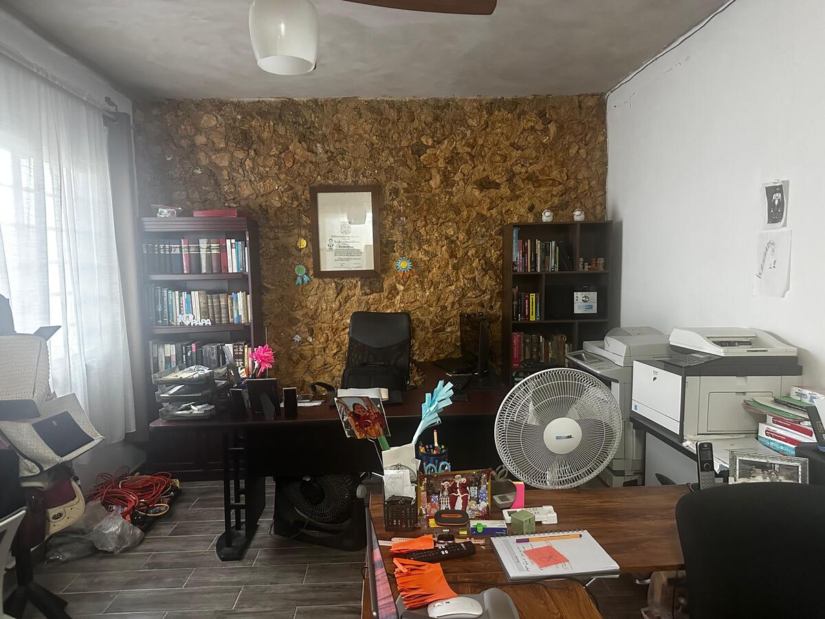 • Sala con 2 ventiladores, TV, mueble de sala, mesa de centro de madera, mesa pequeña, de madera con lámpara, credenza.