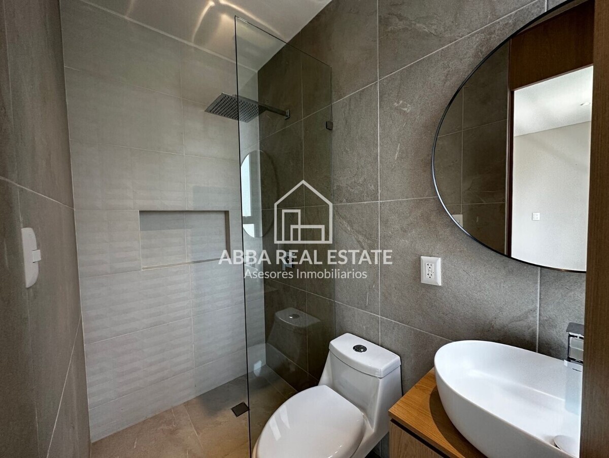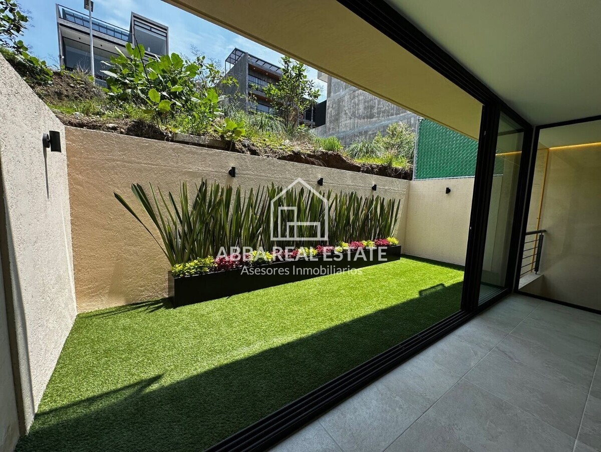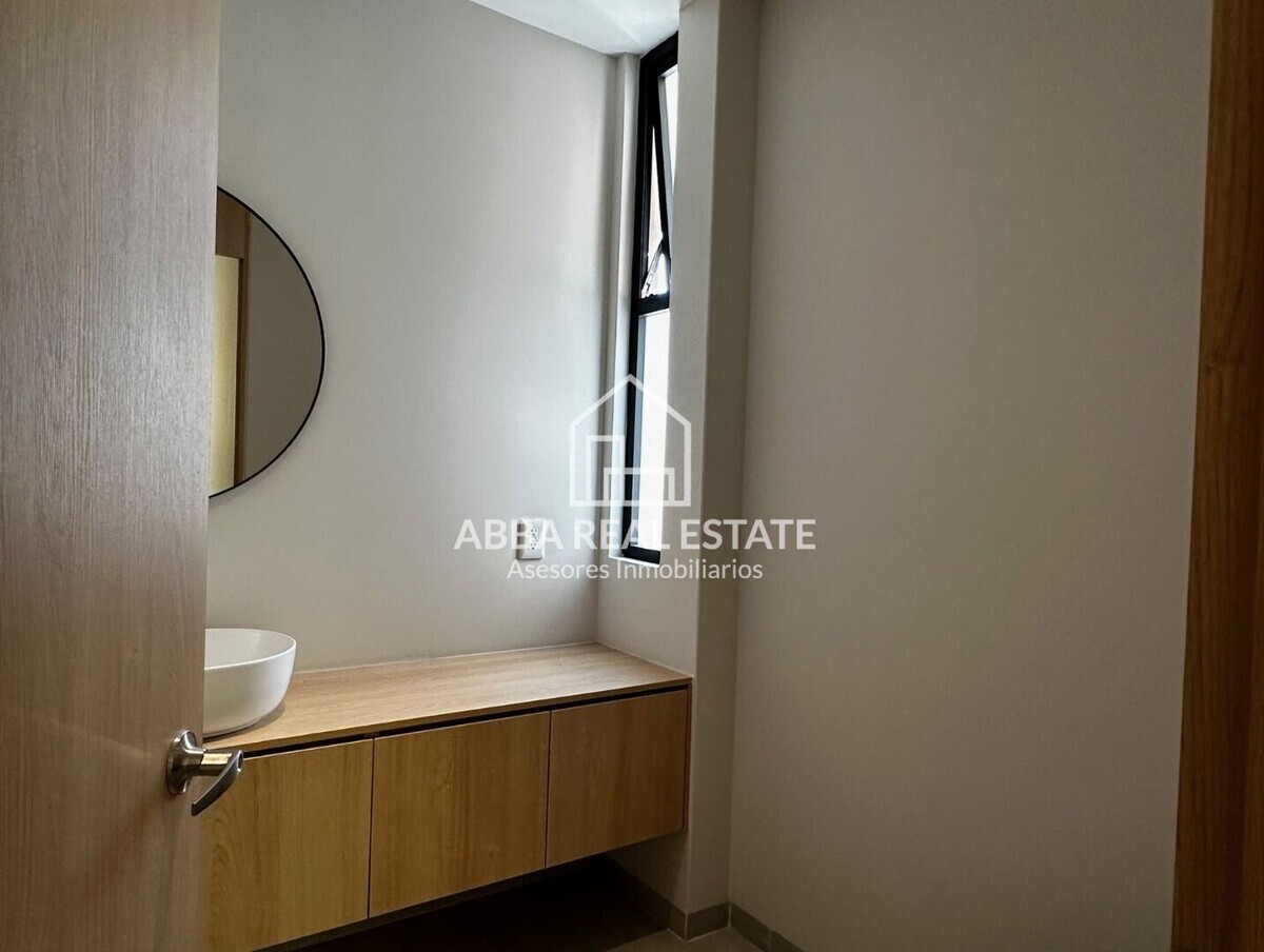 En el primer nivel, disfruta de una cocina abierta con elegante cubierta de cuarzo con doble tarja, ideal para compartir momentos especiales. La sala y el comedor se integran armoniosamente y se conectan con un jardín con pasto sintético, creando un ambiente cálido y moderno.