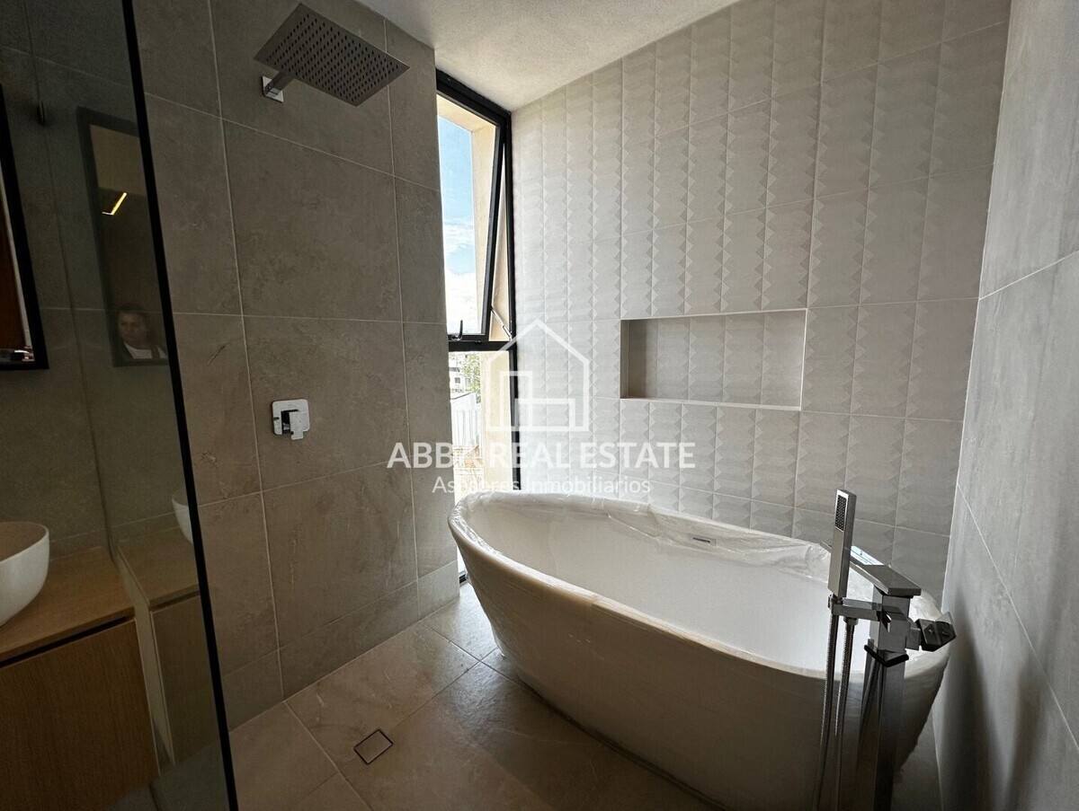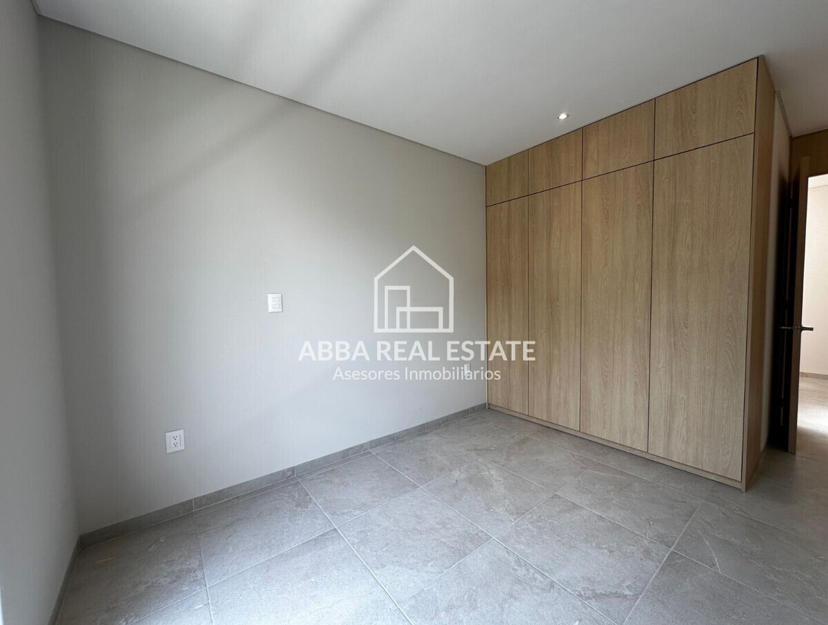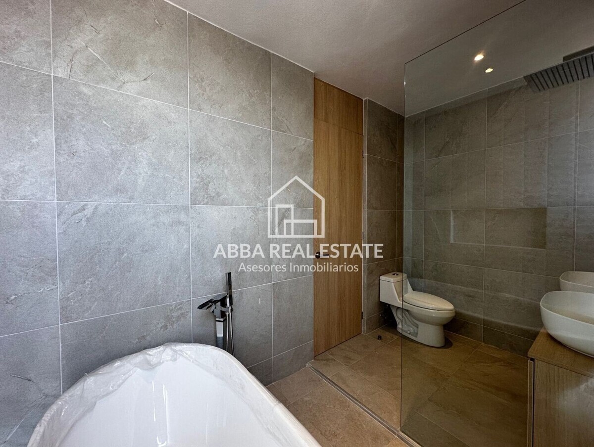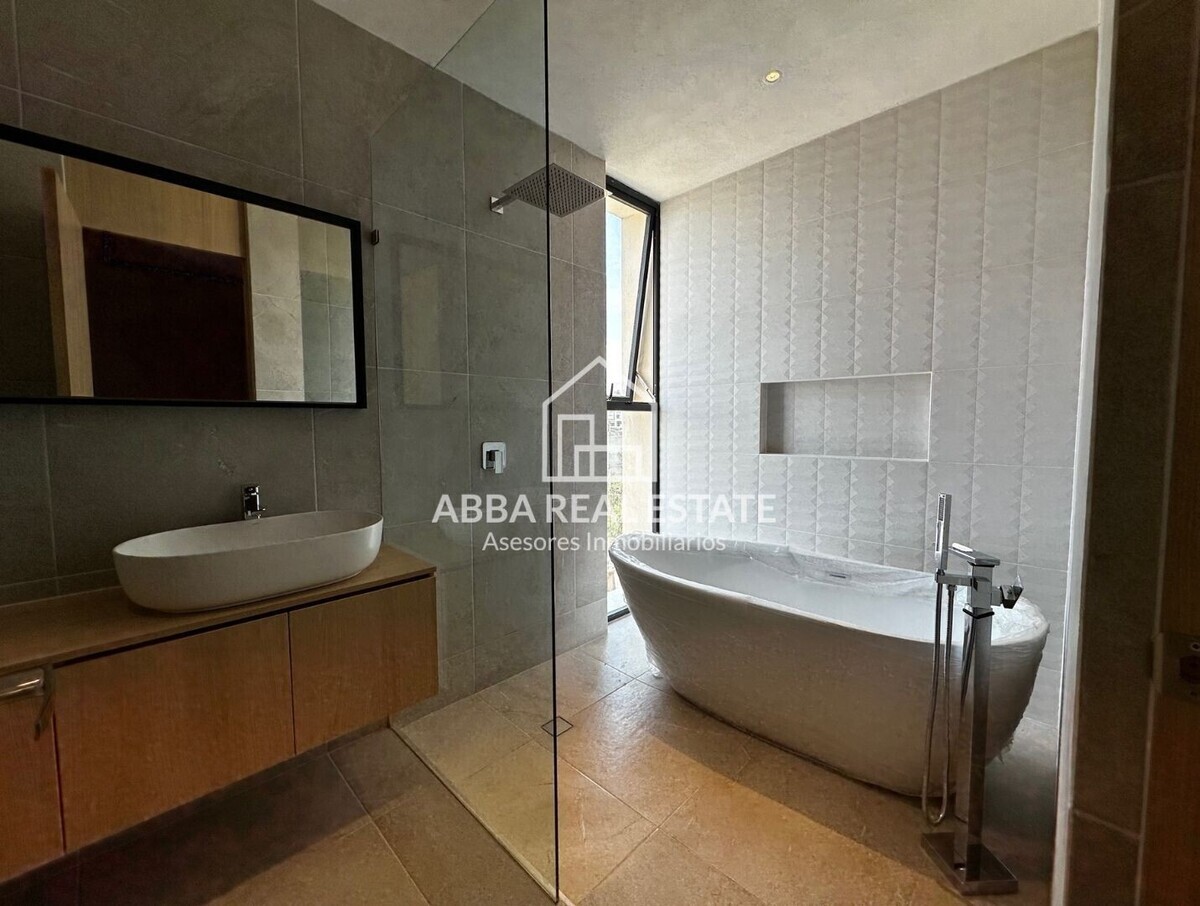 Recámara principal con amplio vestidor, baño completo con dos lavabos regadera y una tina para relajarte.