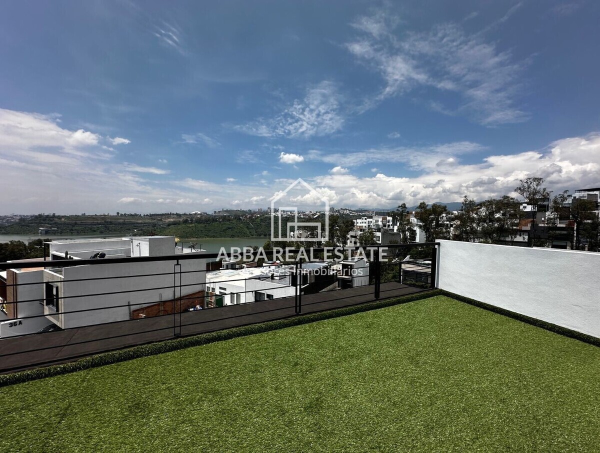 Finalmente, en el tercer nivel, disfruta de un espectacular Roof Garden con pasto sintético, área techada y zona al aire libre con tarja y medio baño, perfecto para reuniones, disfrutar del atardecer o simplemente relajarte.