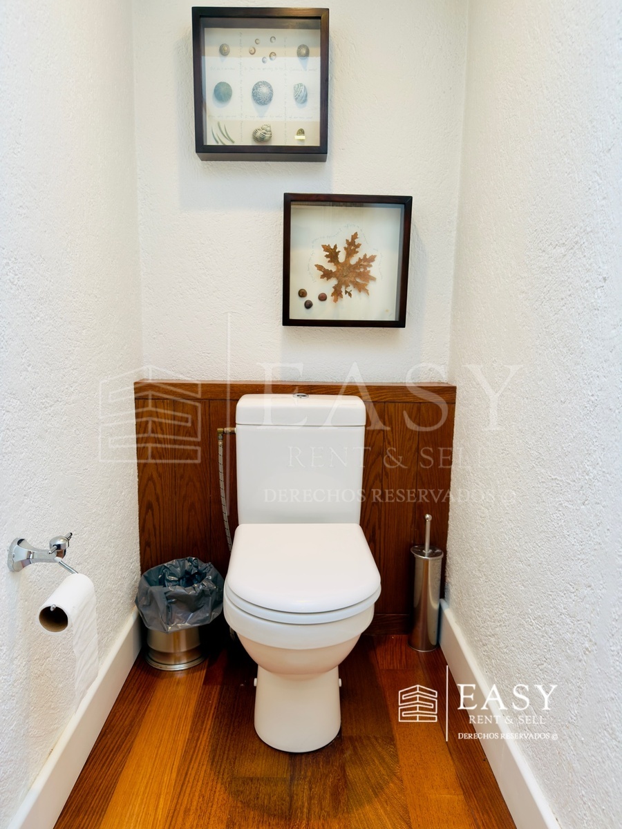 It has a living room, dining room, family room, and lounge with a bar, all with floor-to-ceiling windows that open to a flat garden of 350 m² and a beautiful view of the forest, creating a perfect space to socialize, relax, and enjoy nature without leaving home, integrating with the outdoors. Three bedrooms with bathroom and dressing room (the main one with a private terrace and panoramic view). Additionally, it includes a closed study with a half bath, adaptable as a fourth bedroom or office.