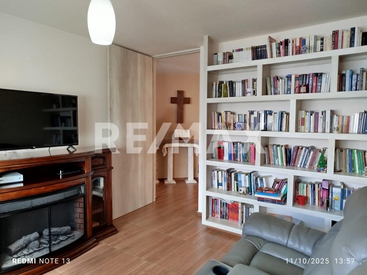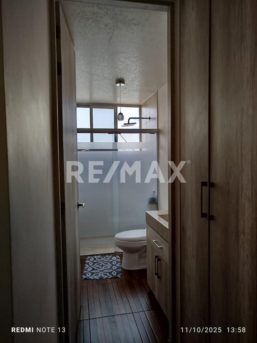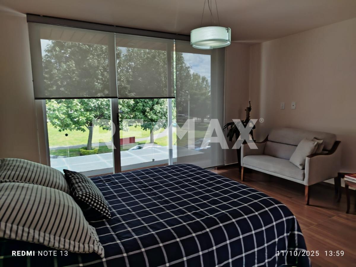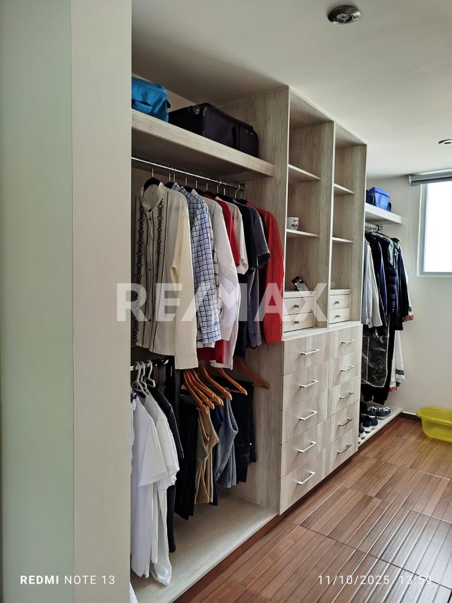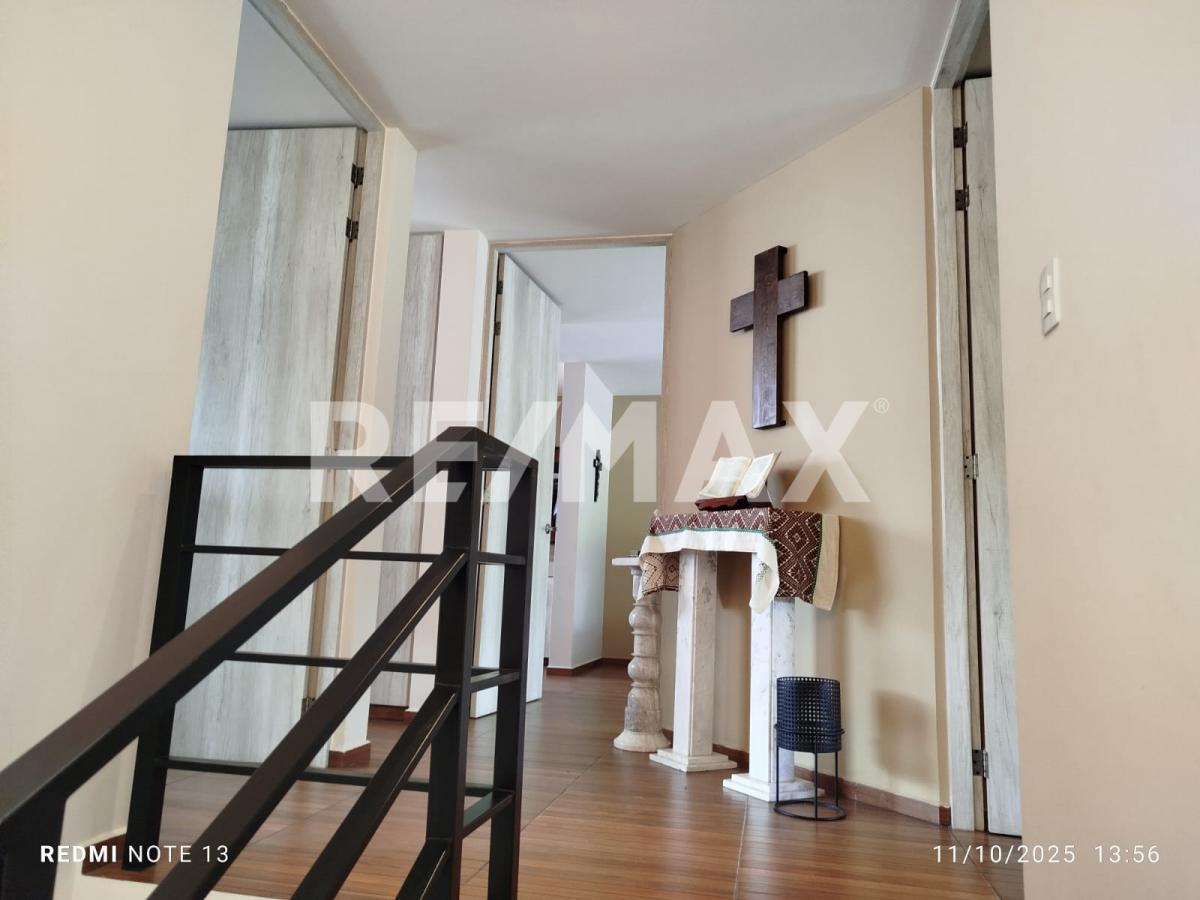 Planta alta tres habitaciones, una ocupada como área de televisión y biblioteca, la principal con vestidor y baño completo y la tercera con amplio closet y baño completo adjunto. Las tres con vista a jardín frontal del fraccionamiento.