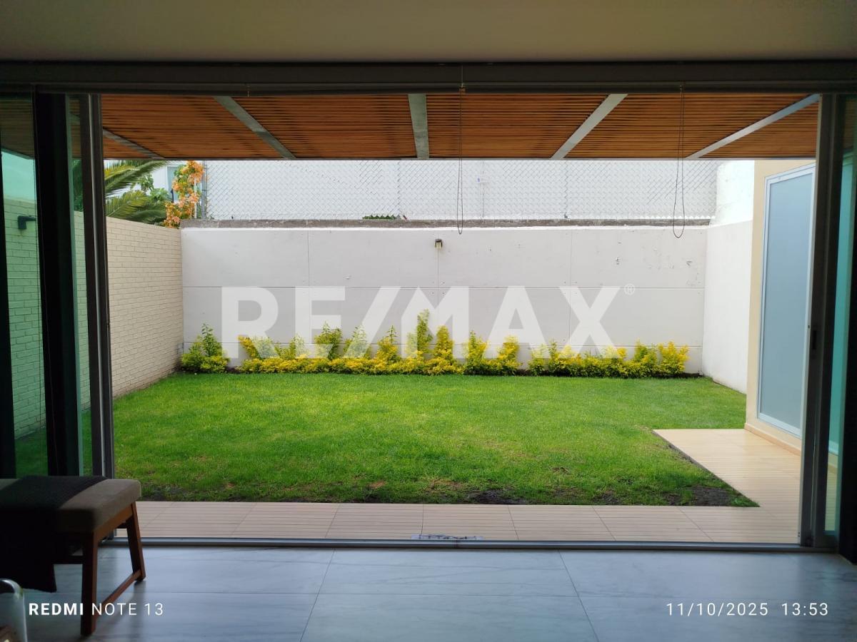 En la planta baja consta de estacionamiento techado para dos autos, estudio, baño para visitas, amplia cocina con vista al área de jardín del fraccionamiento, cómoda barra con cava para vinos y elegante iluminación indirecta como se puede apreciar en las fotografías, sala comedor amplio jardín trasero y área de lavado disimulada con cancel para mantener la vista agradable del jardín.