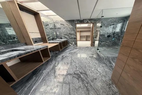 - Cuatro recámaras amplias, cada una con baño completo equipado con cancelería de vidrio templado, lavabos de mármol, vestidor, balcón y pisos de porcelanato, creando un ambiente de confort y estilo.