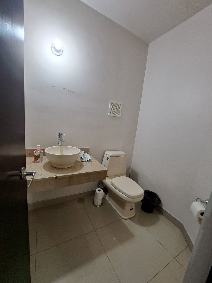 Sala, comedor, cocina equipada con parrilla, campana, horno, barra tipo grapa. Medio baño de visitas.
