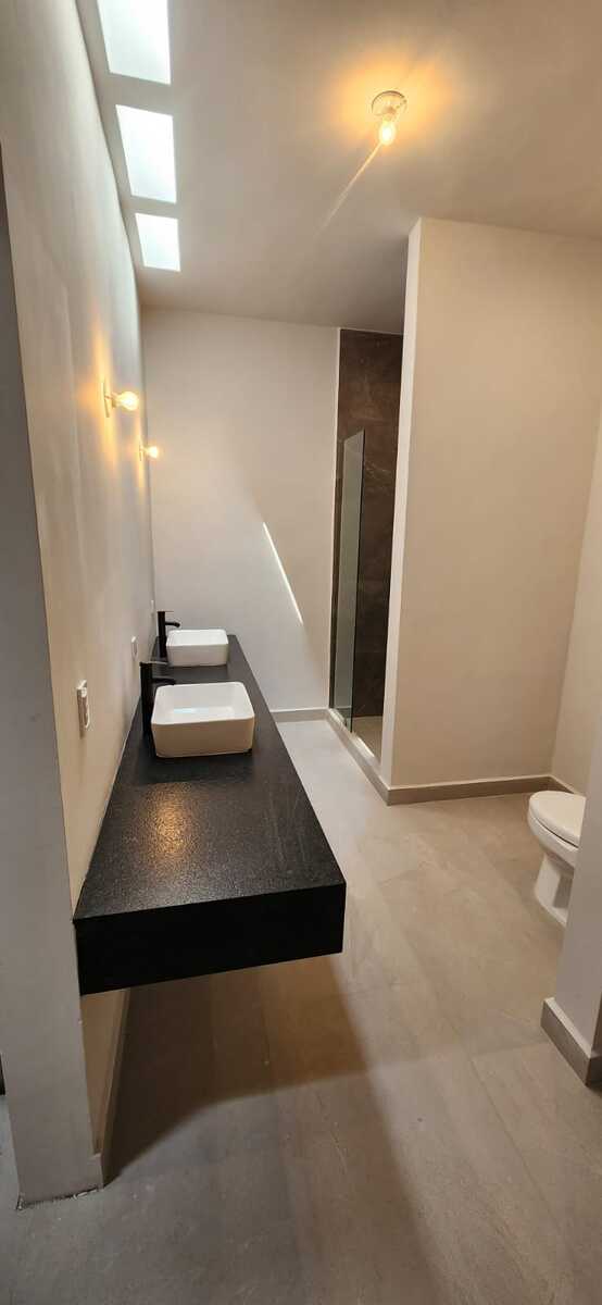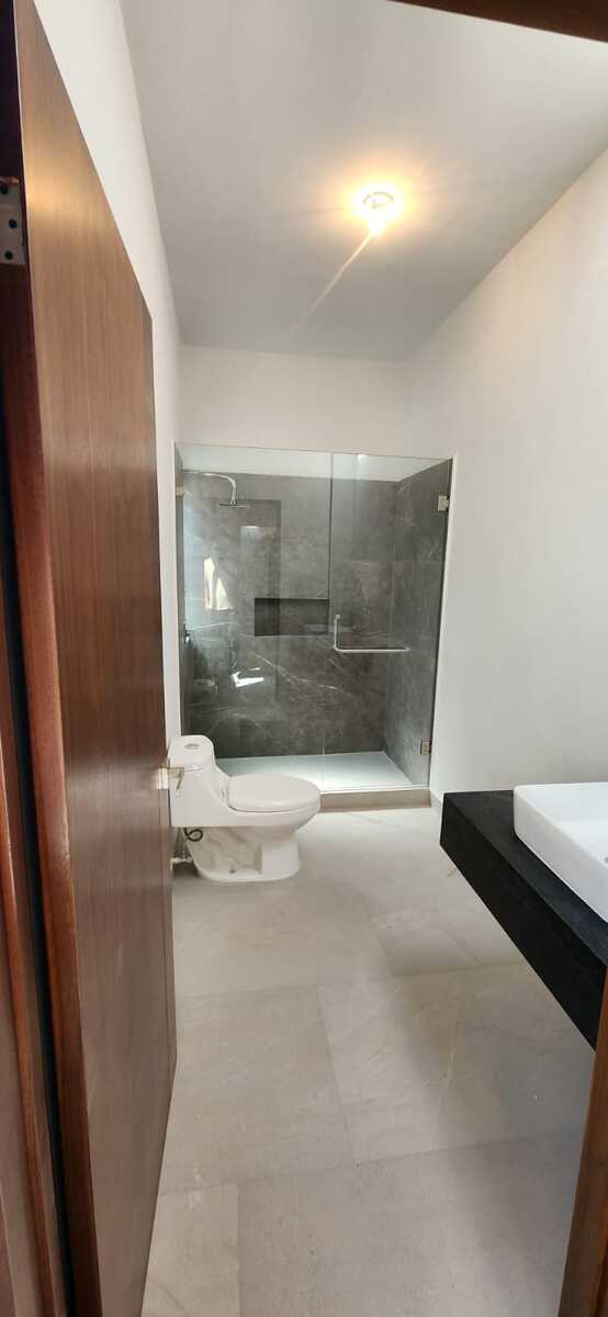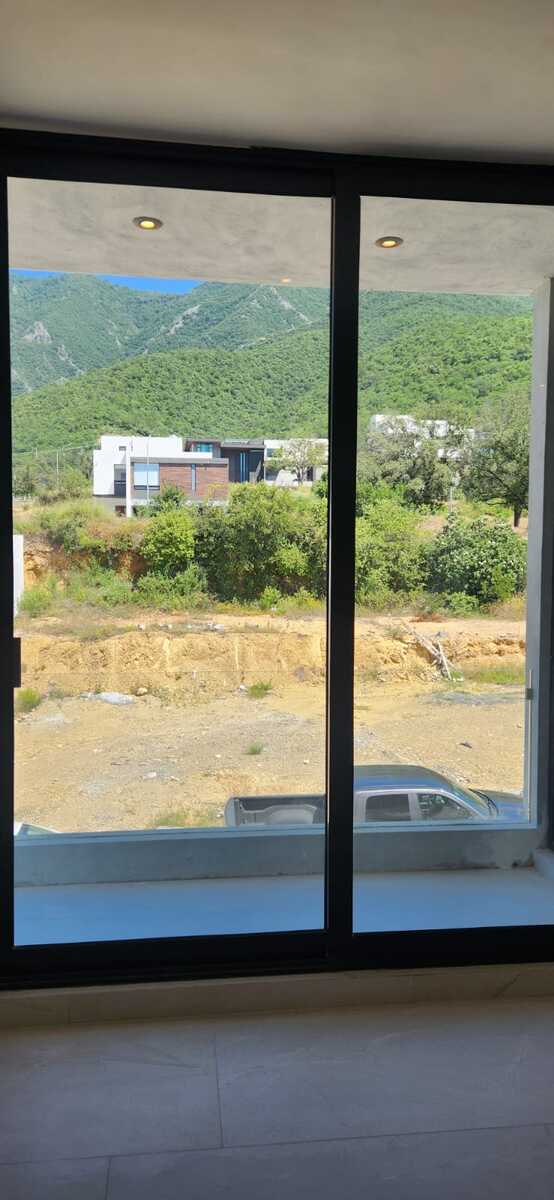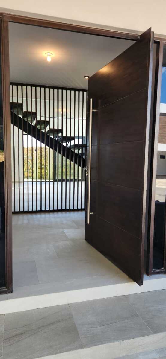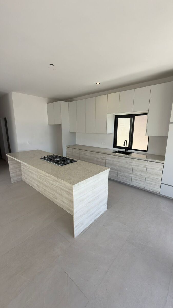 Jardín con pasto sintético, pérgola, terraza y asador.