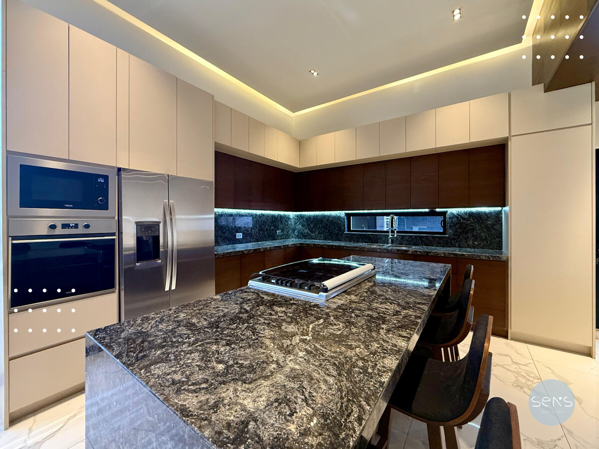 Cocina en Alto Brillo, Madera y Barra de Granito