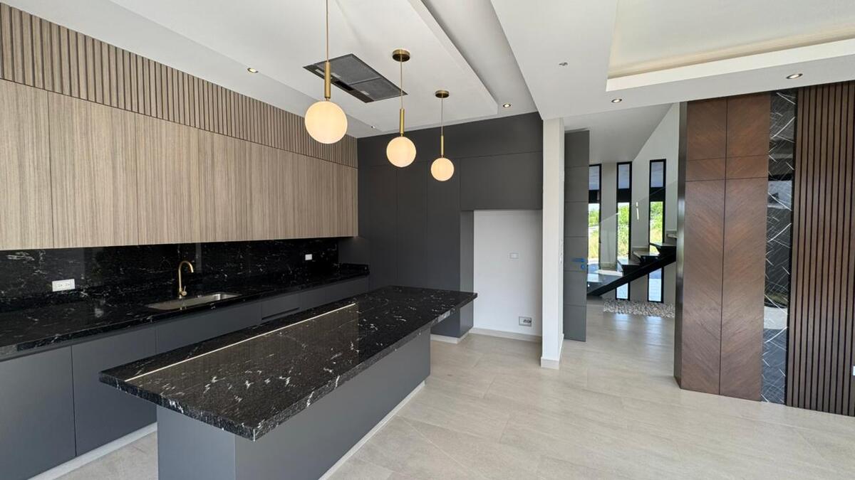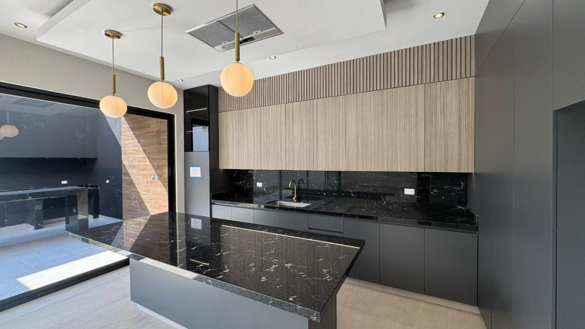 • Cocina integral de diseño con isla y cubiertas de granito.