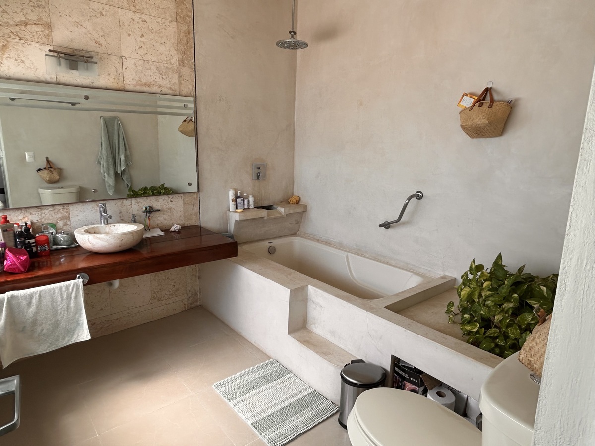 *Recámara principal con aire acondicionado con vista a la piscina con un amplio baño completo con tina y closet-vestidor