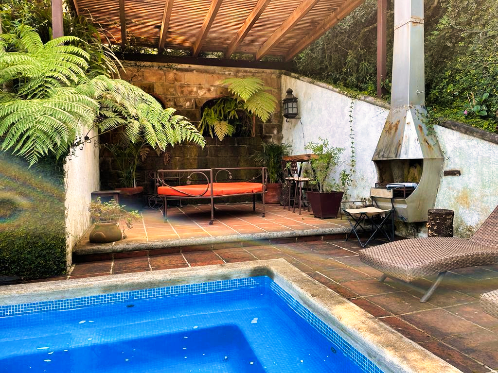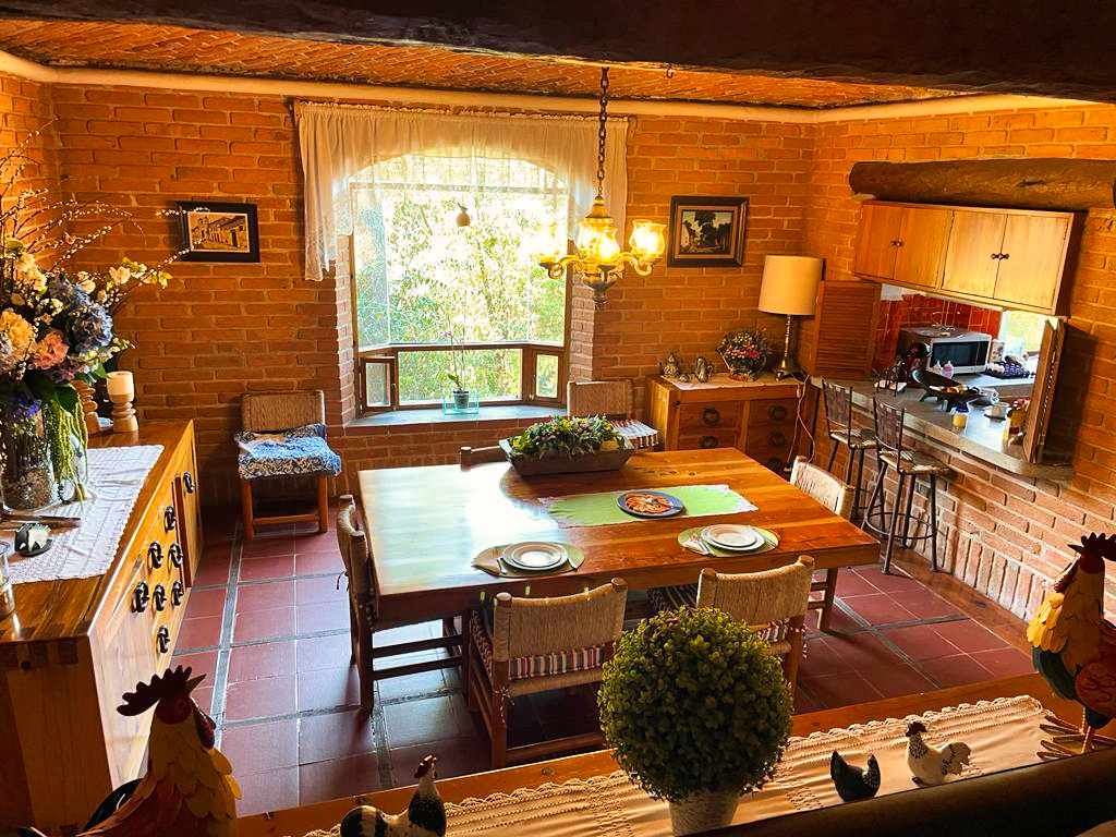 Casa de sólida construcción en piedra, y hermosos trabajos artesanales en tabique rojo. Cuenta con dobles muros, dobles alturas en sala, techos de tejamanil y un diseño que resalta calidez y carácter. Ubicada en una zona muy tranquila, rodeada de bosque, perfecta para disfrutar de la naturaleza.