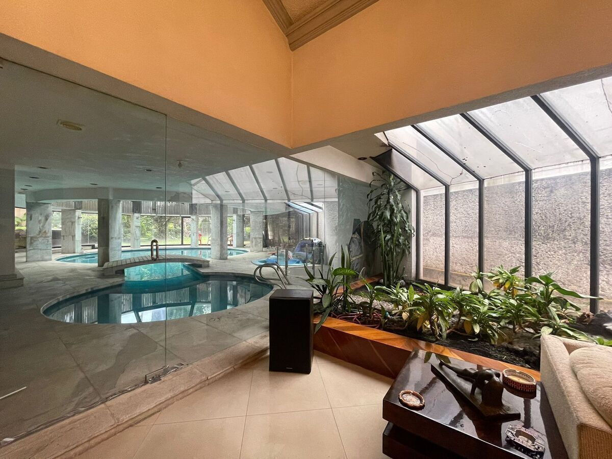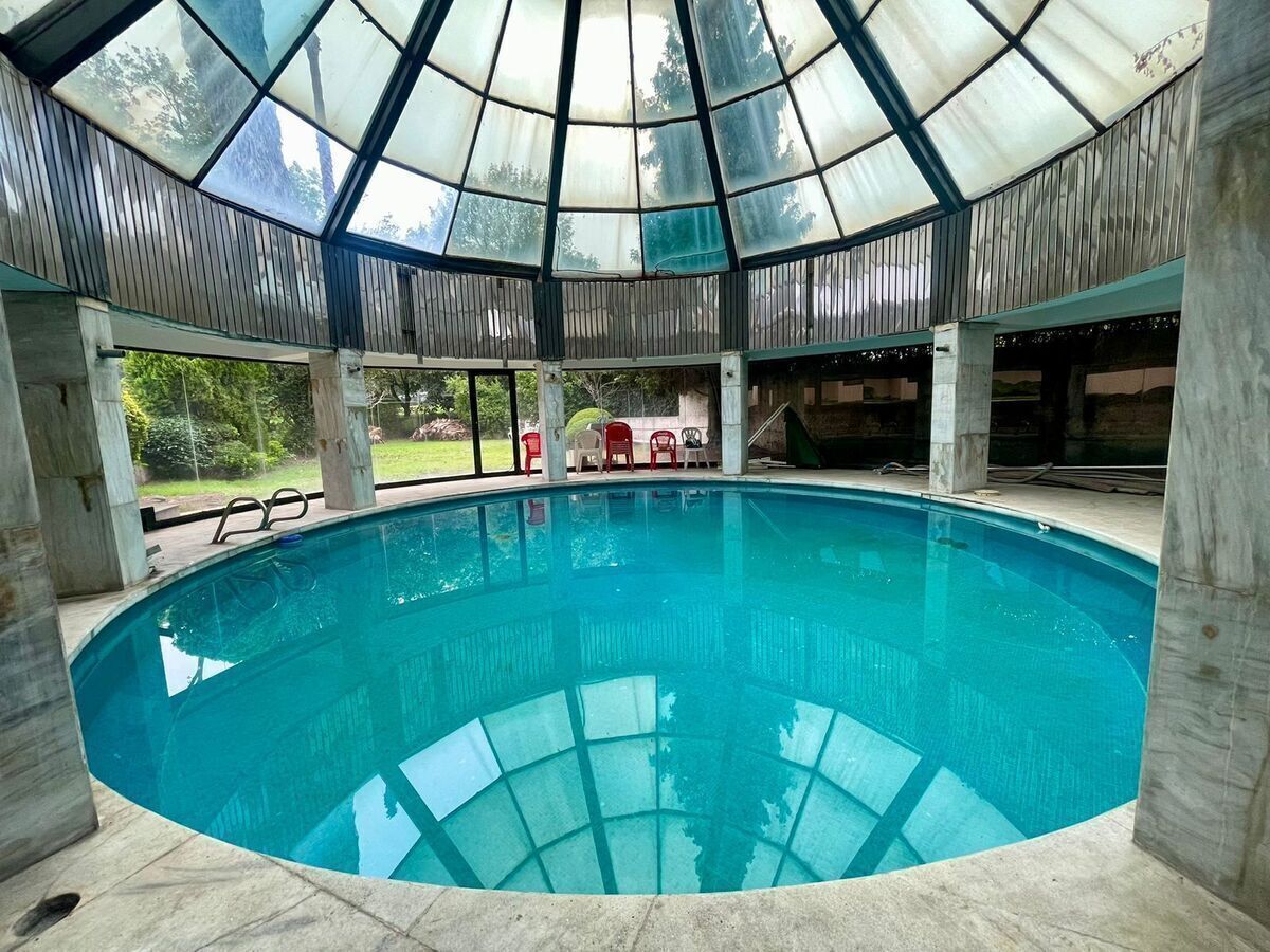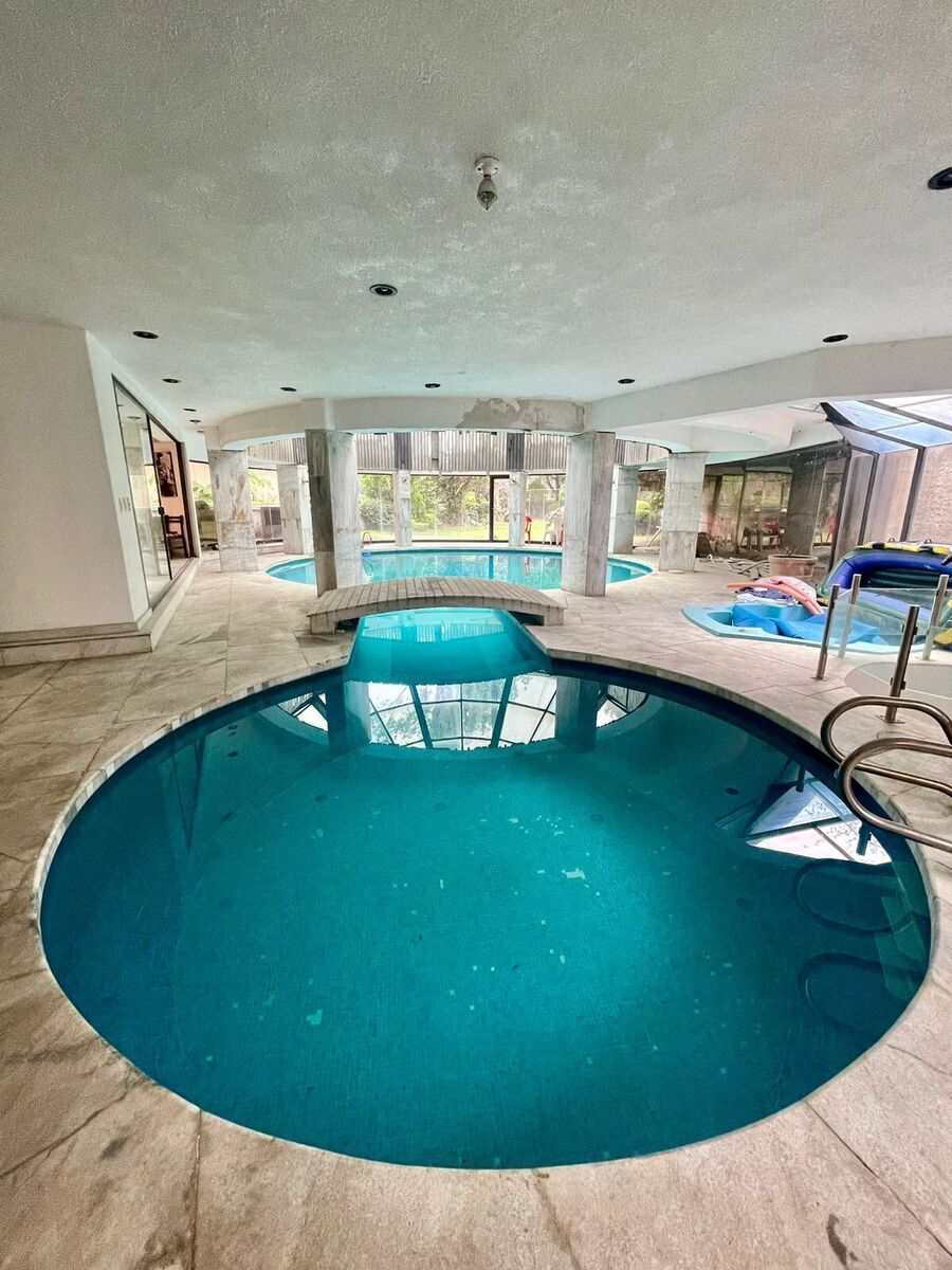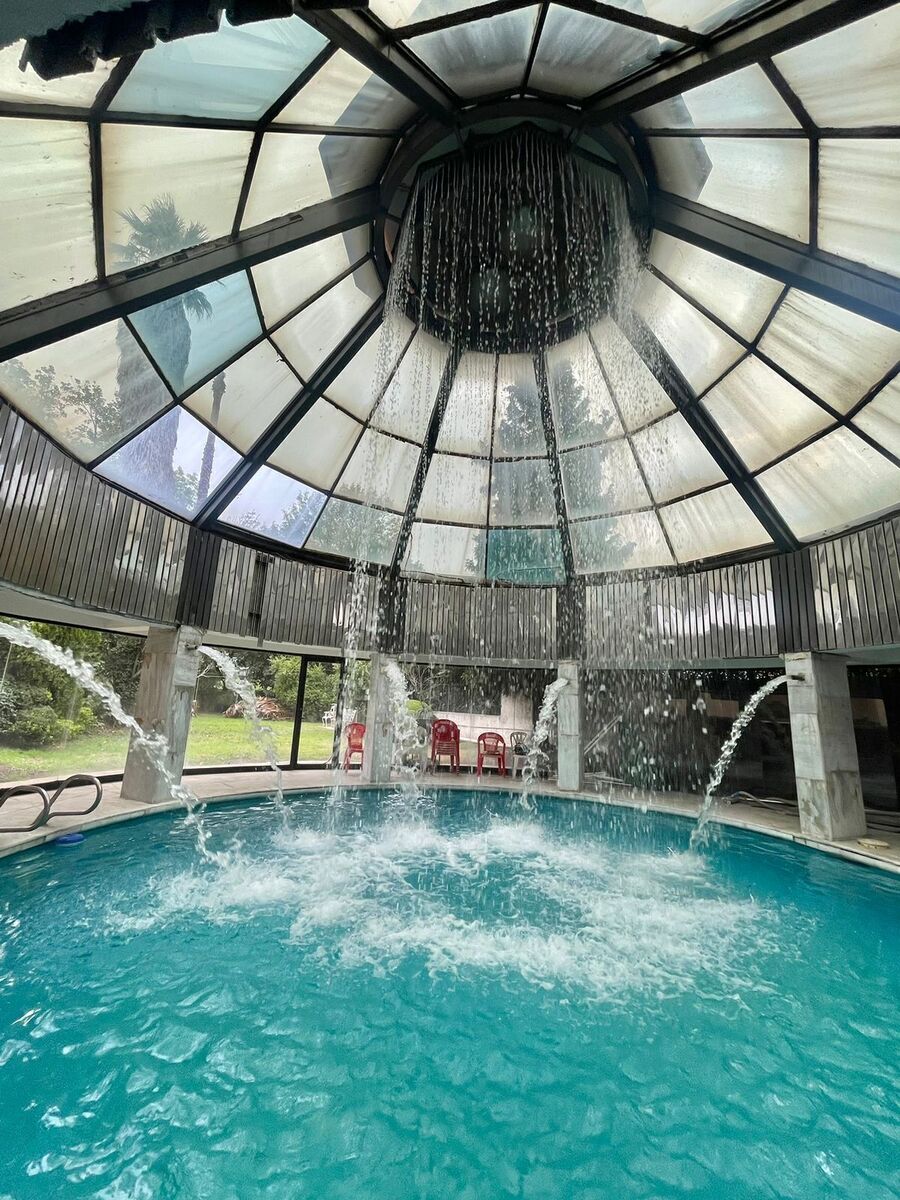 • En la alberca domo giratorio que se abre por el tema de la ventilación . Alrededor varias cascadas