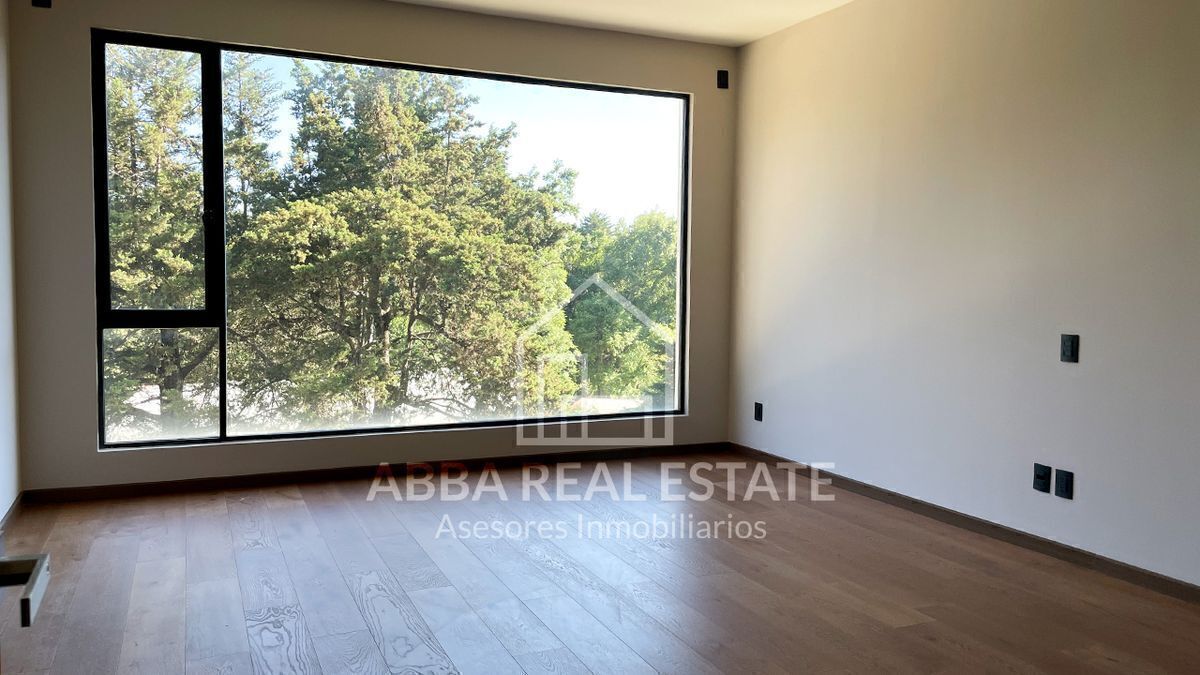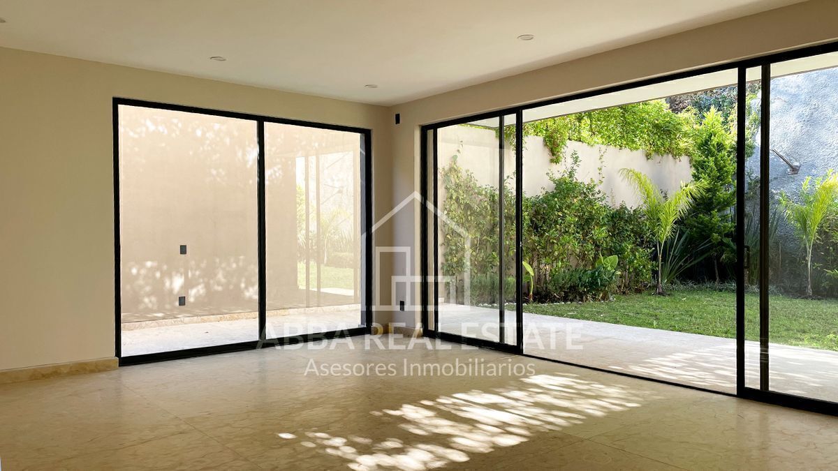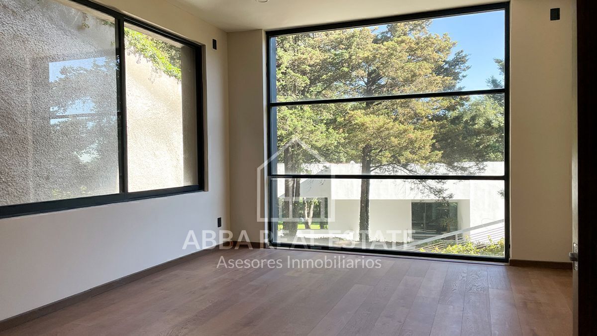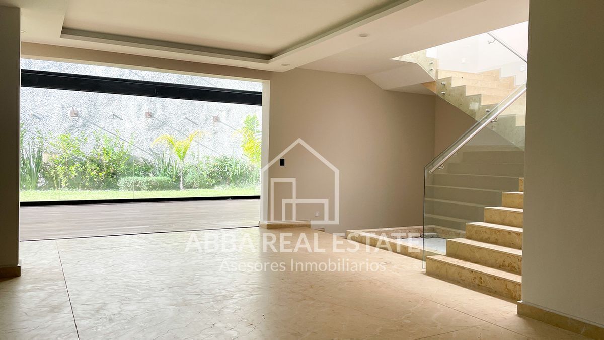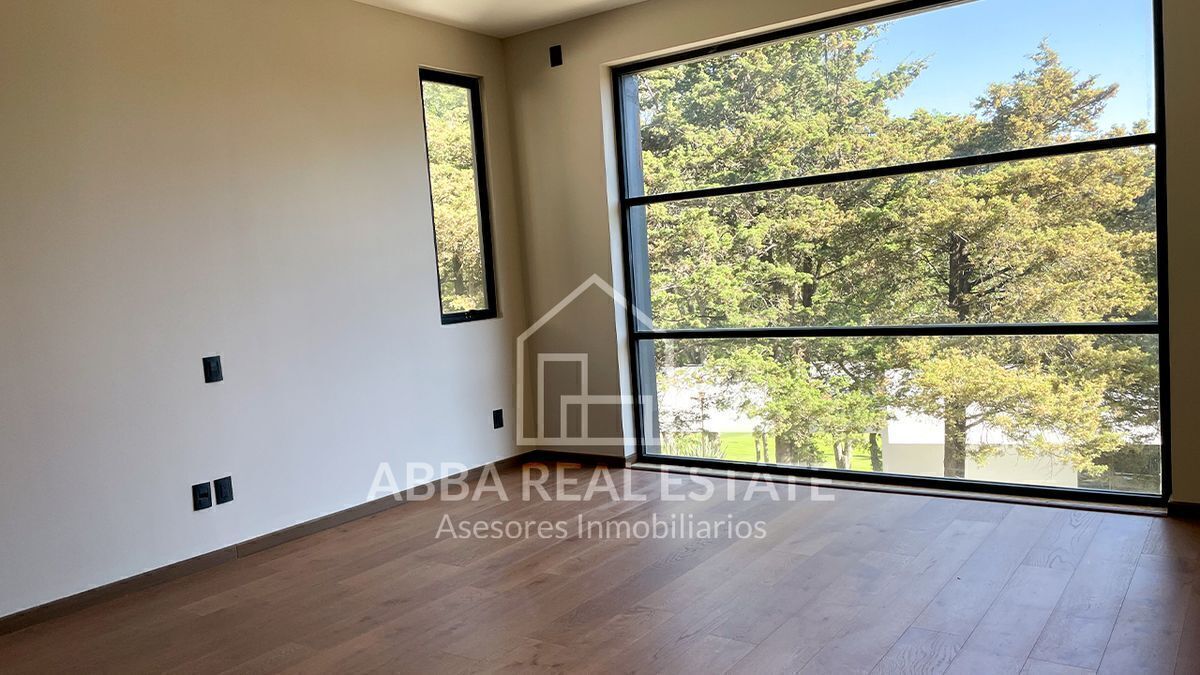 En el primer piso, la entrada principal con amplia puerta de madera nos invita a pasar, al entrar nos recibe la vista de dos despachos con puertas de madera y cristal con vista al exterior, seguido de sala, comedor con techos de doble altura, ventanales para disfrutar la vista a un hermoso jardín, su cocina espectacular con desayunador y terraza que invitan a cocinar disfrutando en reuniones en su salón de juegos en la planta baja, con 6 lugares de estacionamiento, cuarto de lavado, dos cuartos de servicio, su tercer piso podemos imaginar la calidez en familia de sala de televisión en medio de cuatro recamaras con baño completo y vestidor, una con balcón y vista a los árboles del campo de golf, la principal con jacuzzi para disfrutar de un momento de relajación y amplio vestidor.