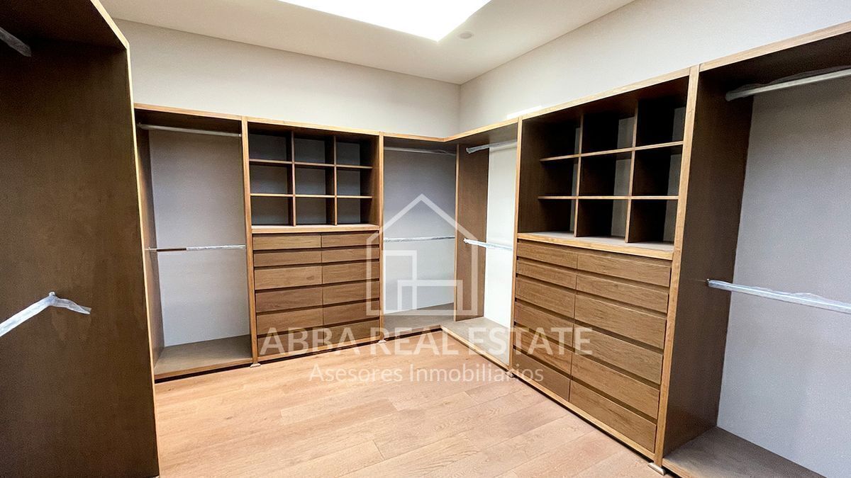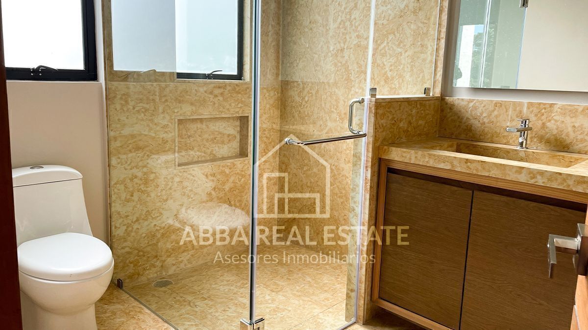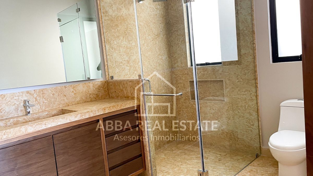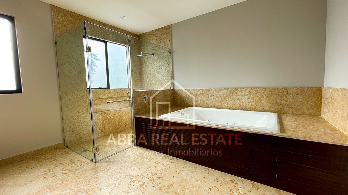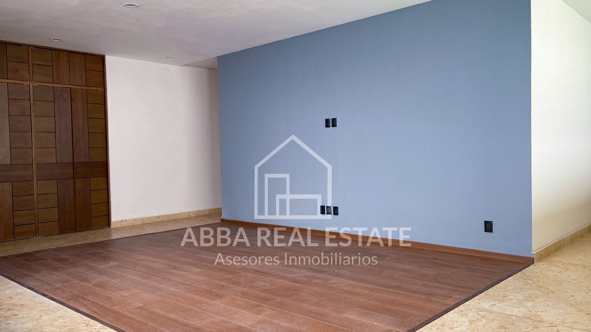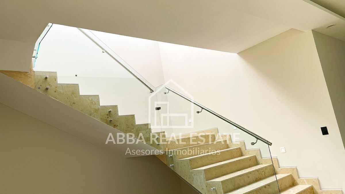 En el primer piso, la entrada principal con amplia puerta de madera nos invita a pasar, al entrar nos recibe la vista de dos despachos con puertas de madera y cristal con vista al exterior, seguido de sala, comedor con techos de doble altura, ventanales para disfrutar la vista a un hermoso jardín, su cocina espectacular con desayunador y terraza que invitan a cocinar disfrutando en reuniones en su salón de juegos en la planta baja, con 6 lugares de estacionamiento, cuarto de lavado, dos cuartos de servicio, su tercer piso podemos imaginar la calidez en familia de sala de televisión en medio de cuatro recamaras con baño completo y vestidor, una con balcón y vista a los árboles del campo de golf, la principal con jacuzzi para disfrutar de un momento de relajación y amplio vestidor.